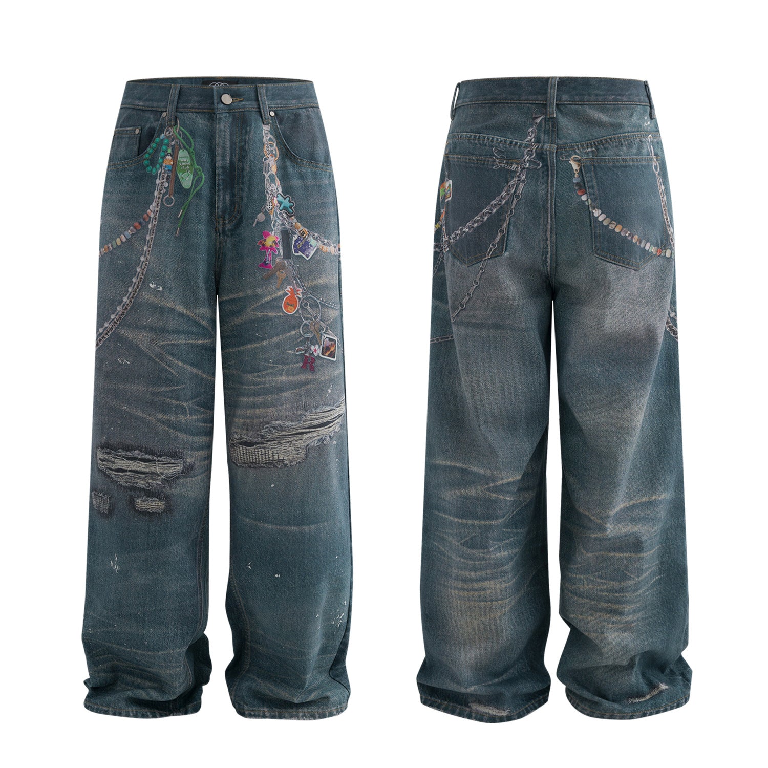 3D Printed Baggy Jeans - Wide Leg Pants for Men