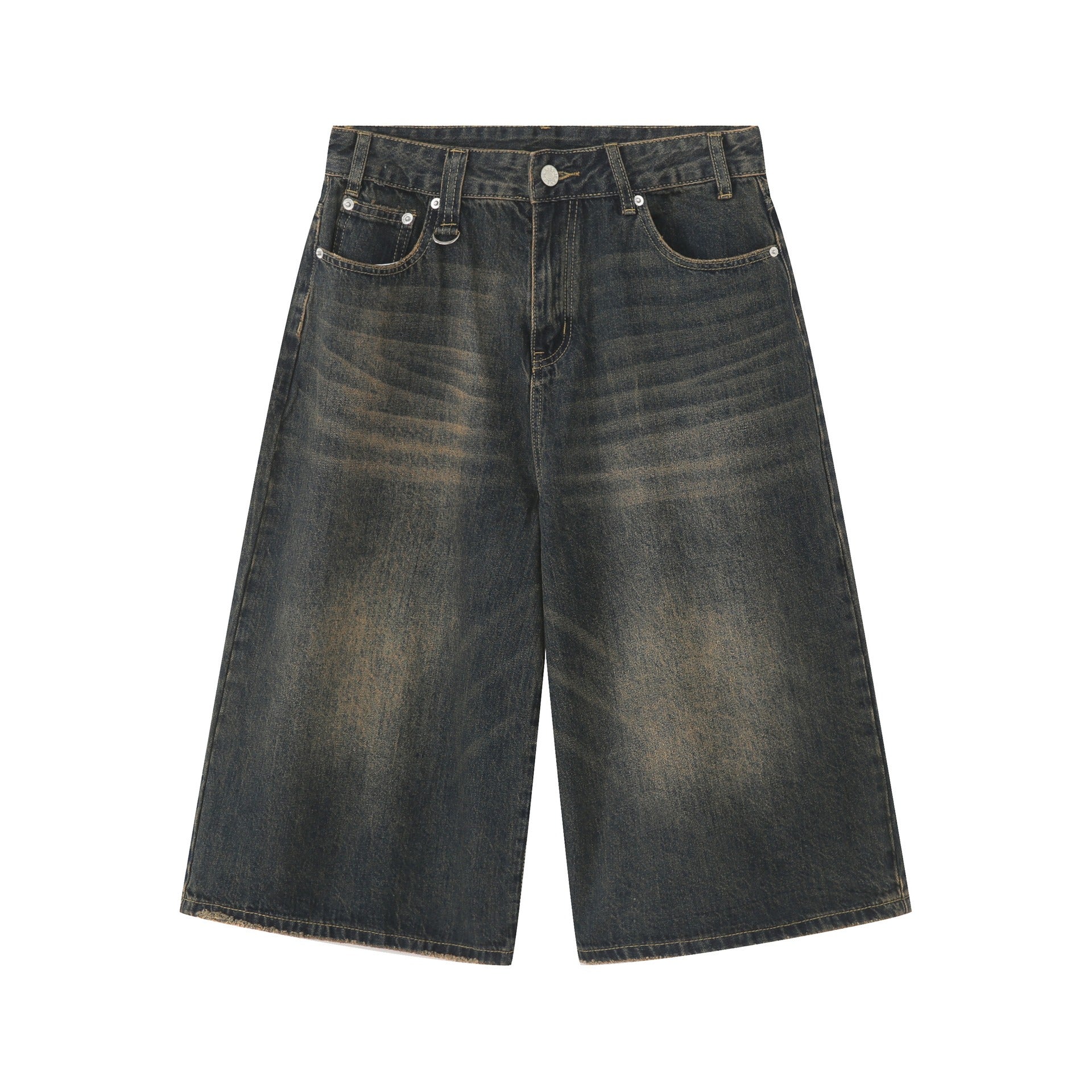 American Retro Distressed Denim Shorts Loose Wide-Leg Cropped Trousers