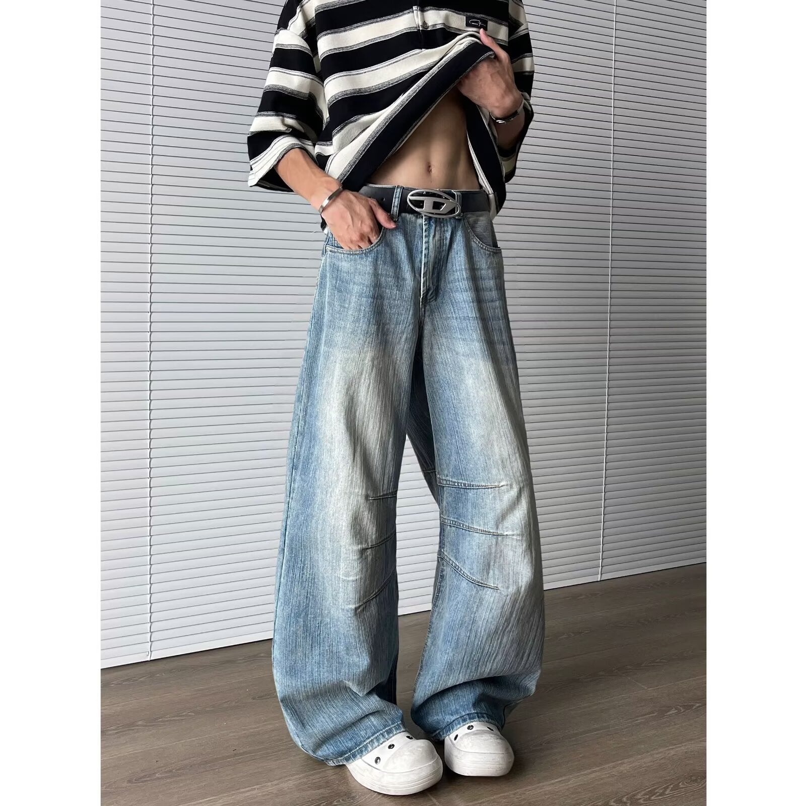 Bamboo Patterned Curved Knife Denim Loose Wide Leg Pants