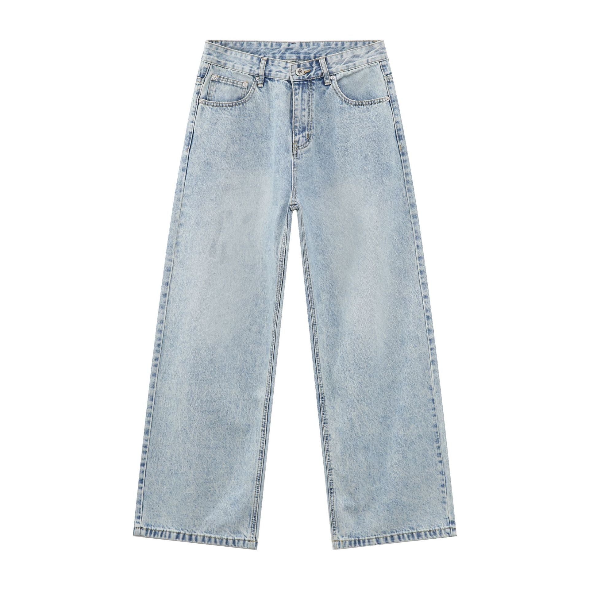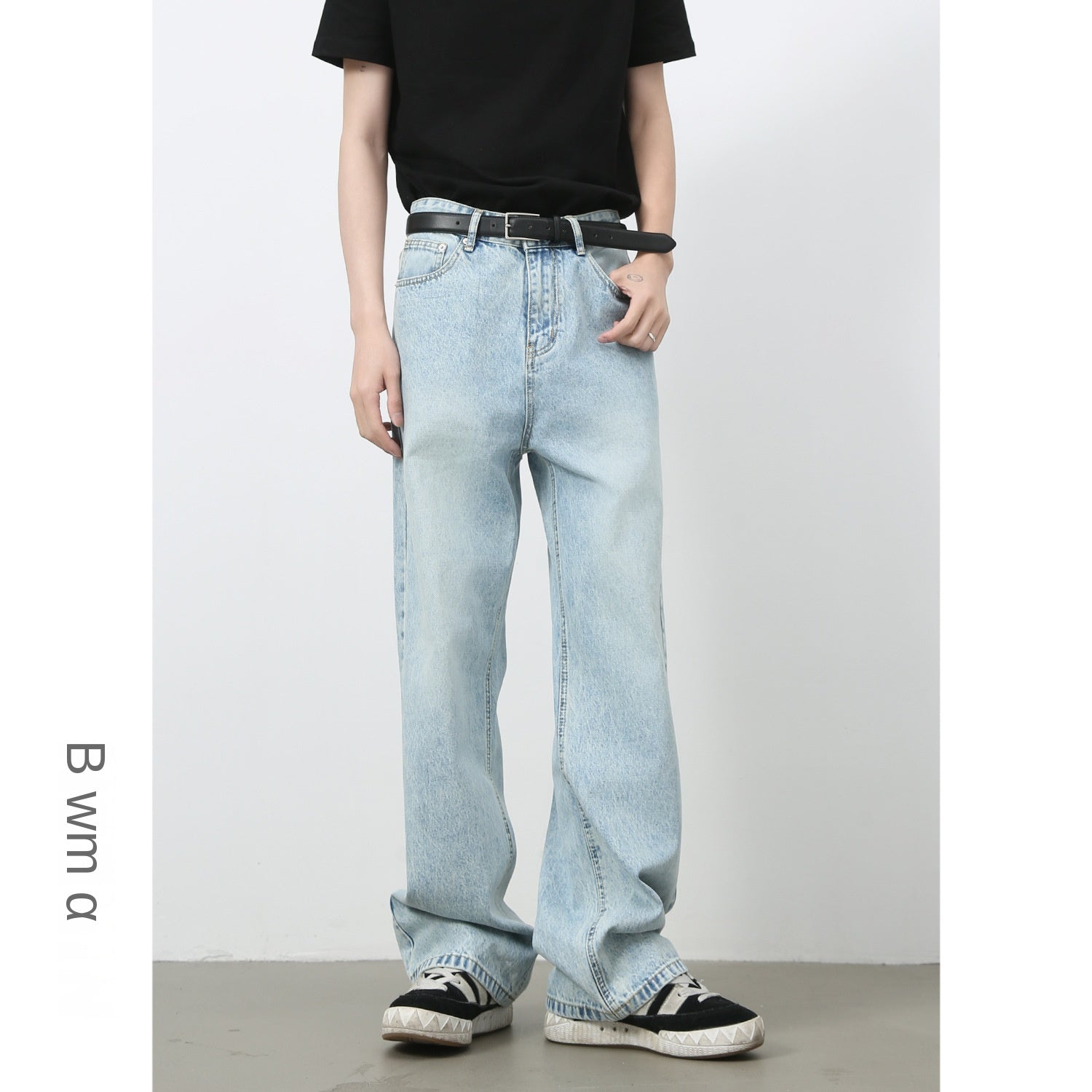 Basic Light Blue Denim Trousers for Men | Korean Style Loose Straight Leg Wide-Leg Long Pants