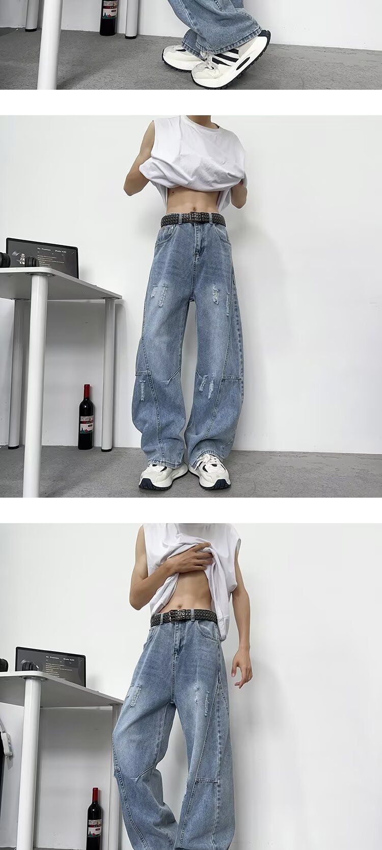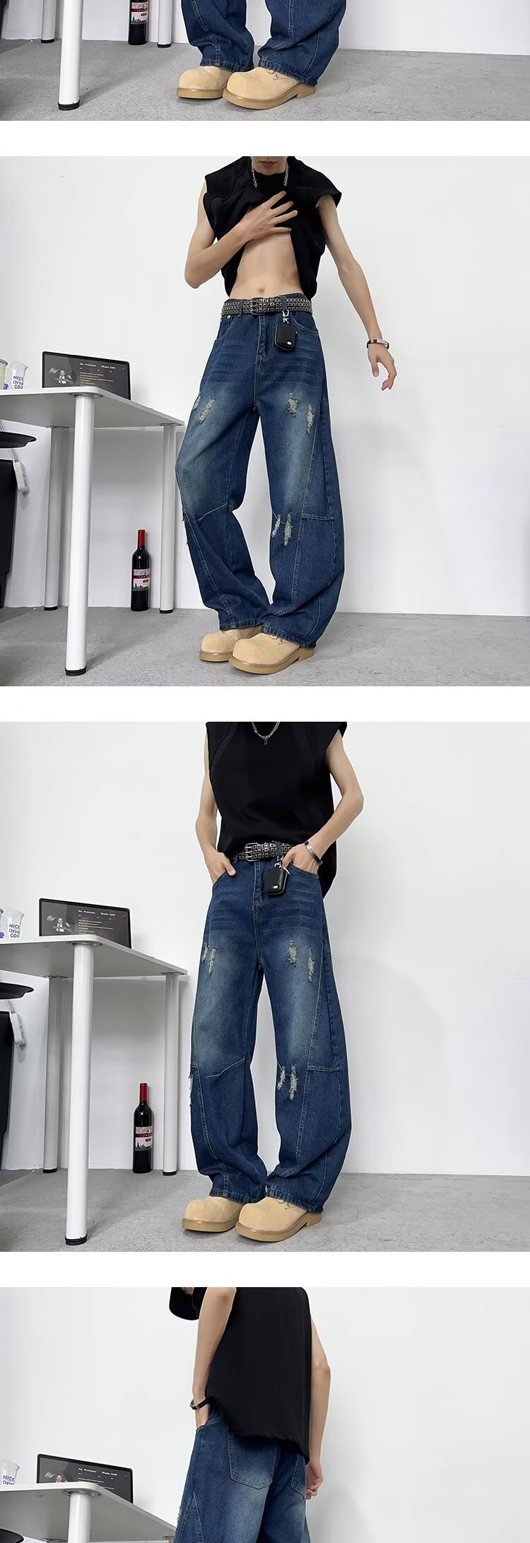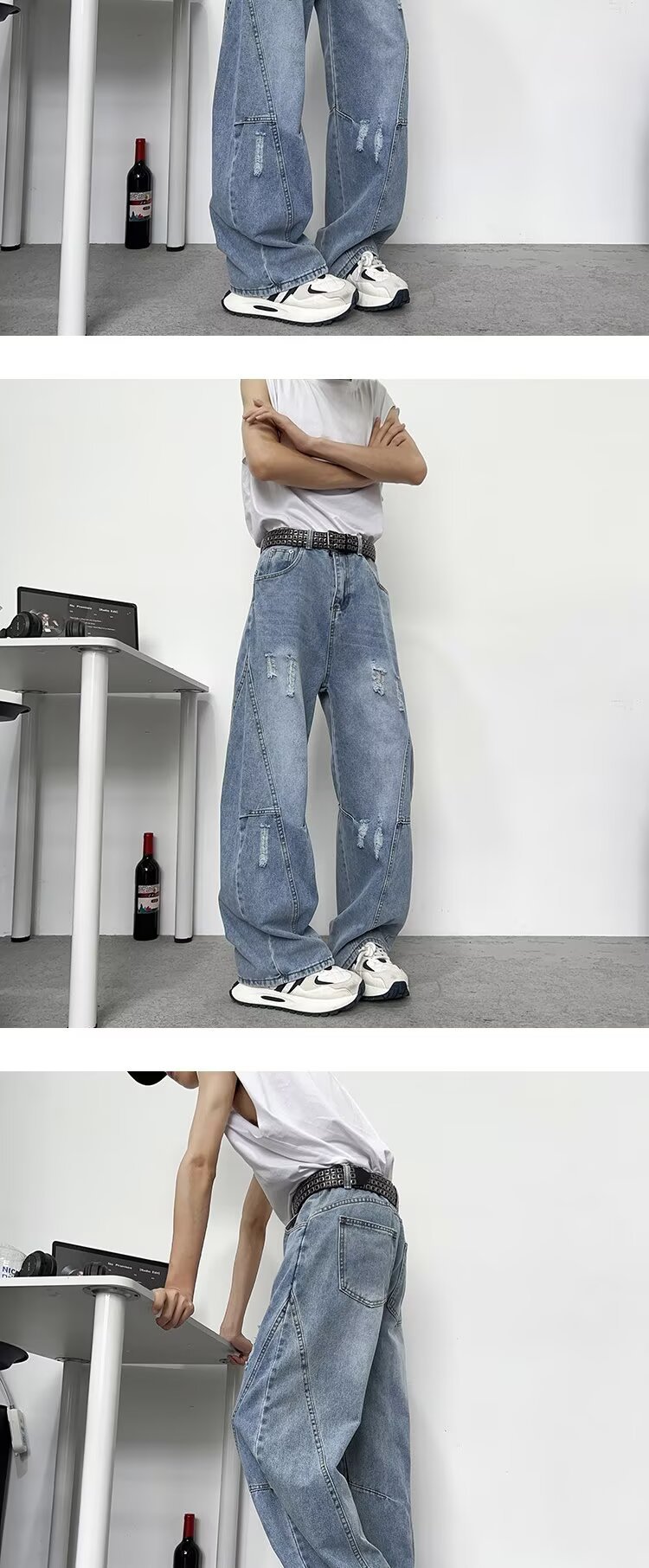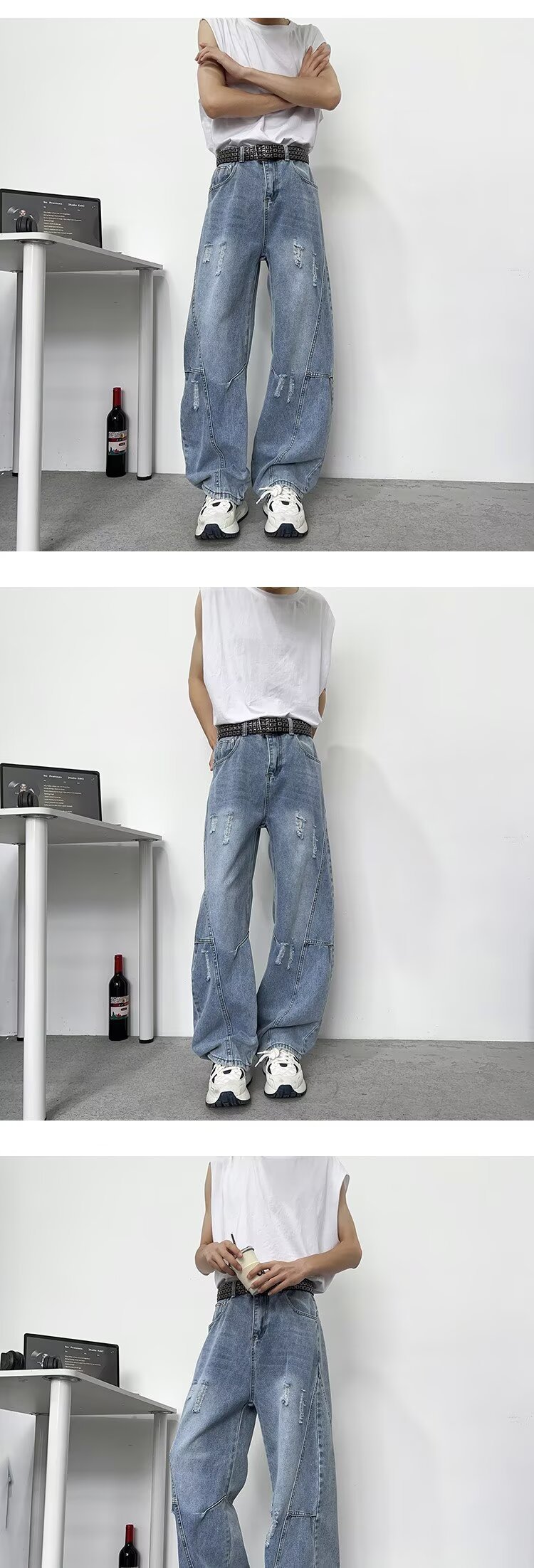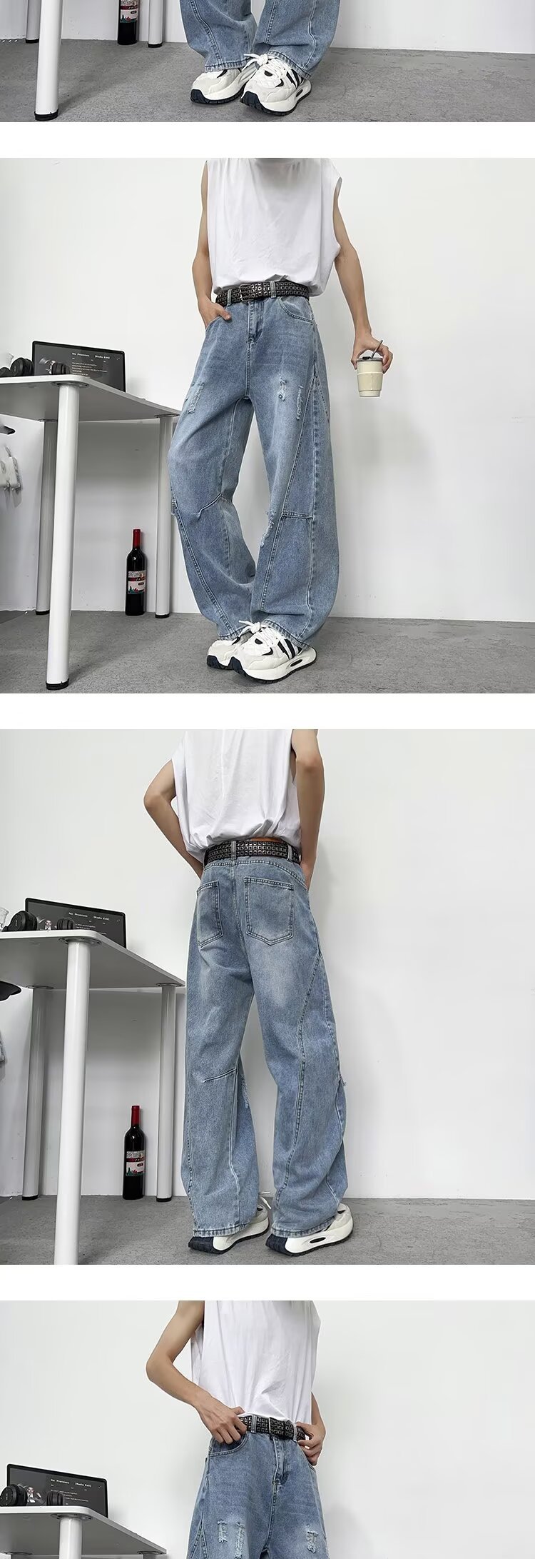 Bent Knife Piercing Cowboy Water Washed Casual Wide Leg Pants