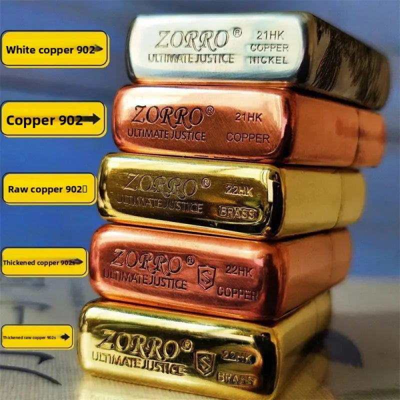 Vintage-style brass and copper metal lighters with multiple pattern options, ideal for collectors and for DIY carving or customization.
