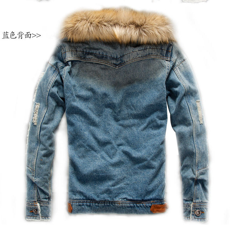 Casual Thickened Fleece-Lined Denim Jacket for Men