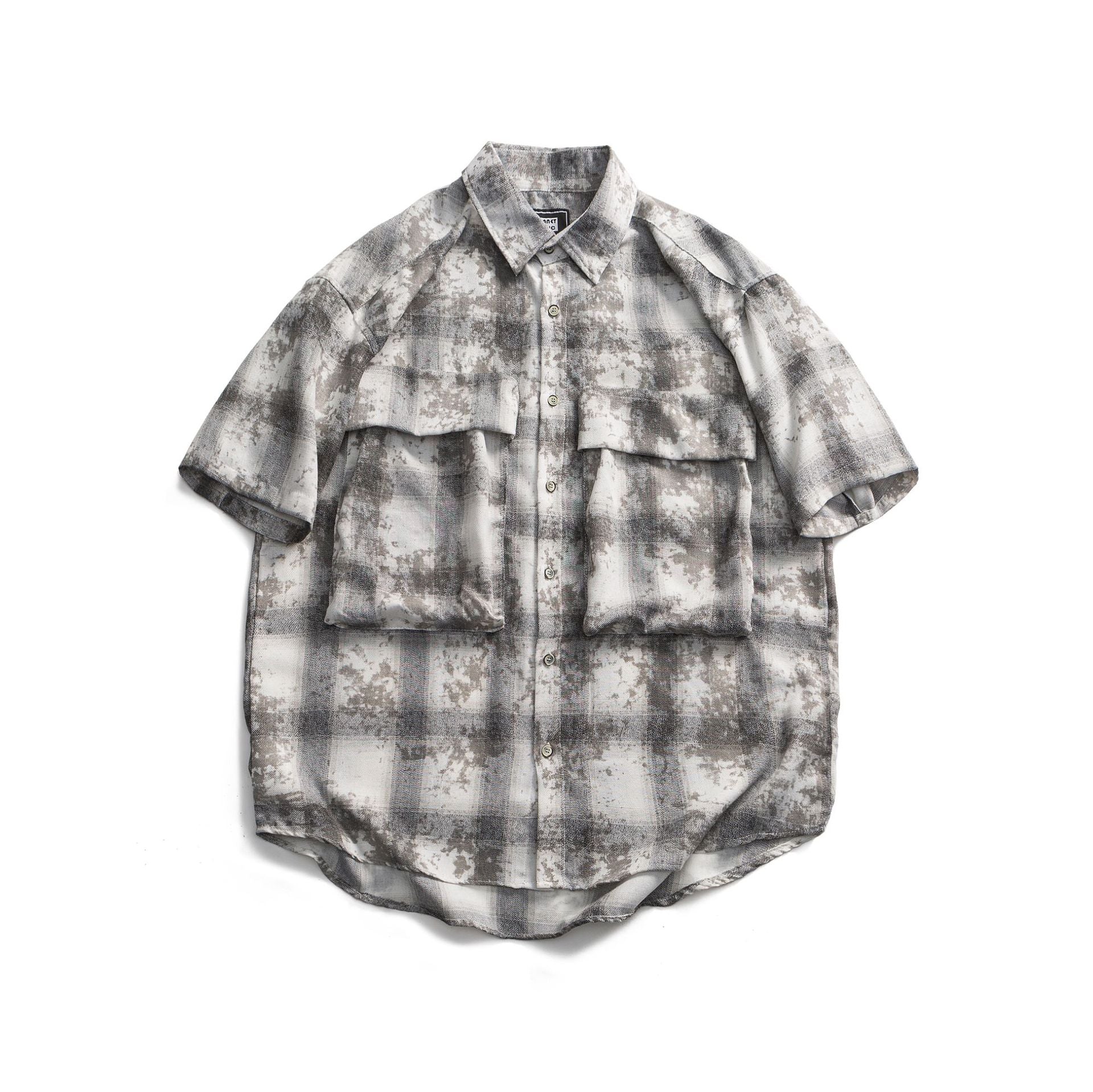 Checkered Camouflage Printed Short Sleeved Shirt for Men