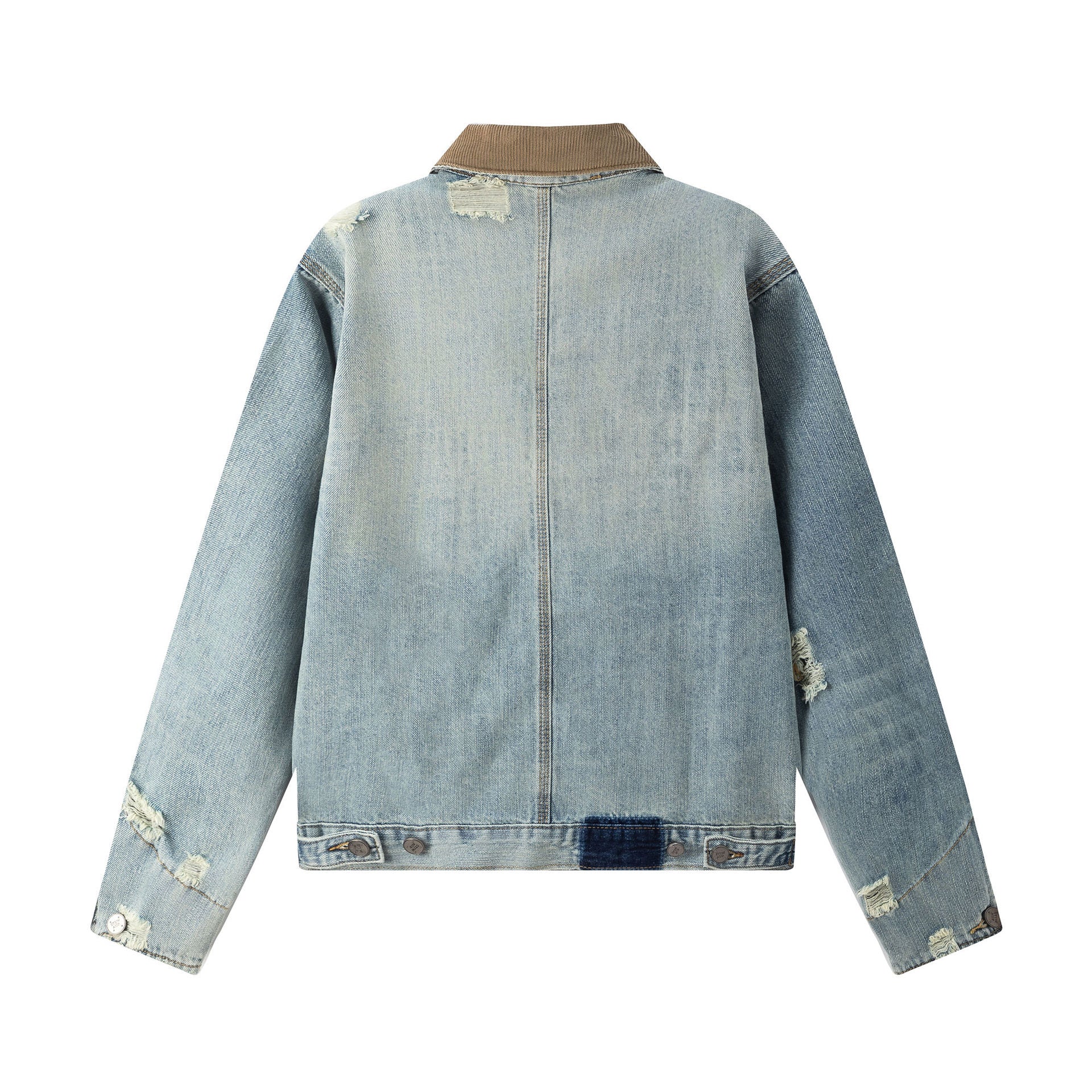 Discover the perfect blend of comfort and style with our Collar Splicing Design Denim Loose Casual Jacket. This jacket is crafted from high-quality cotton, ensuring durability and a soft feel against your skin. Whether you're heading out for a casual outing or just lounging at home, this piece is a versatile addition to your wardrobe.