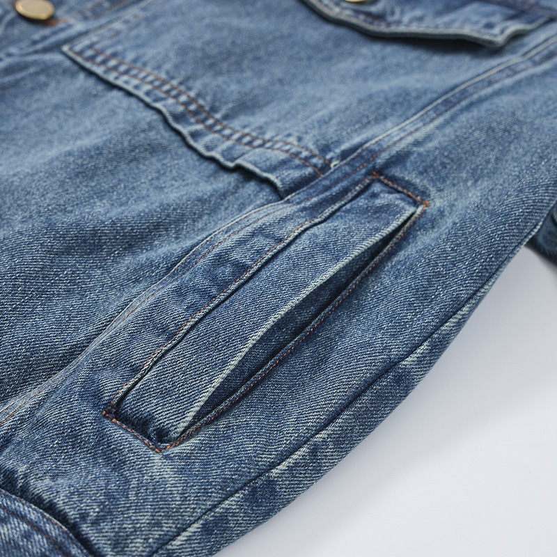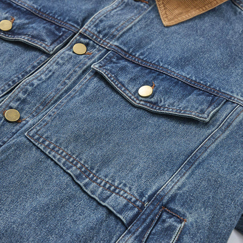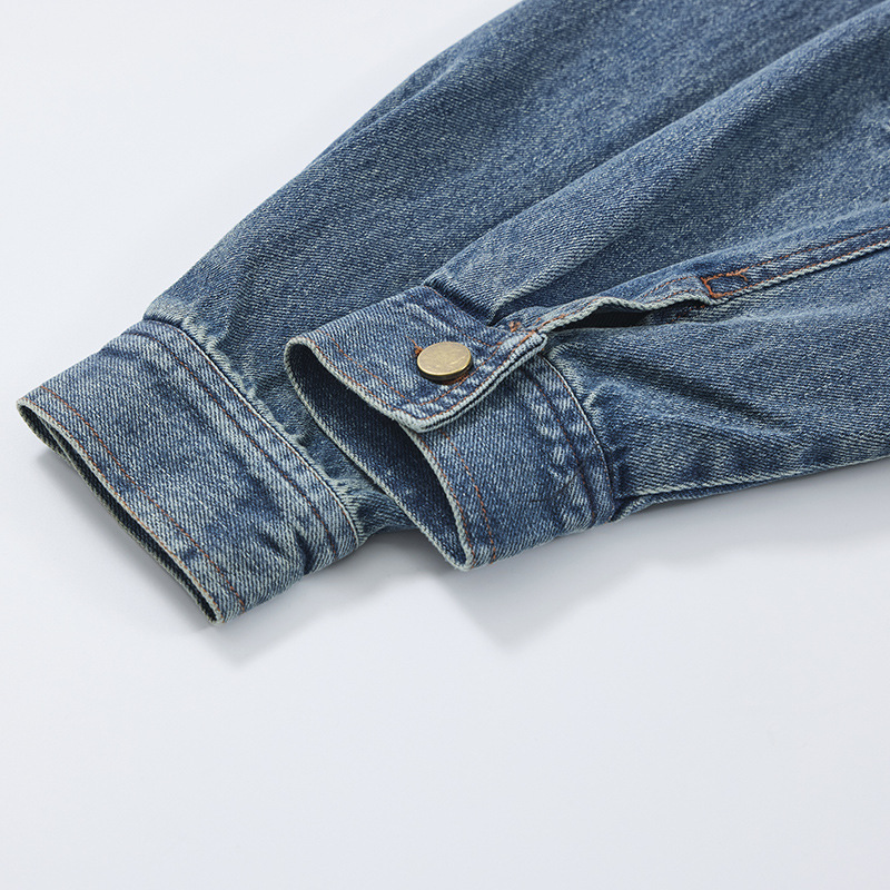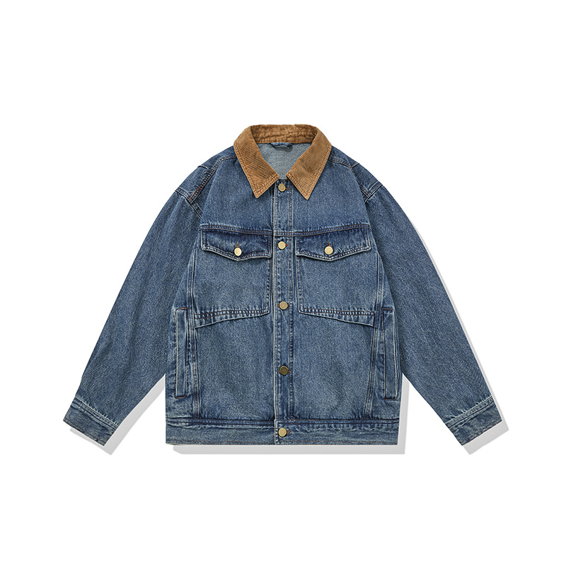 Step into style with our Color-blocked Turn-down Collar Loose Trendy Denim Jacket. This chic denim piece blends modern aesthetics with timeless craftsmanship, making it a must-have for your casual wardrobe.