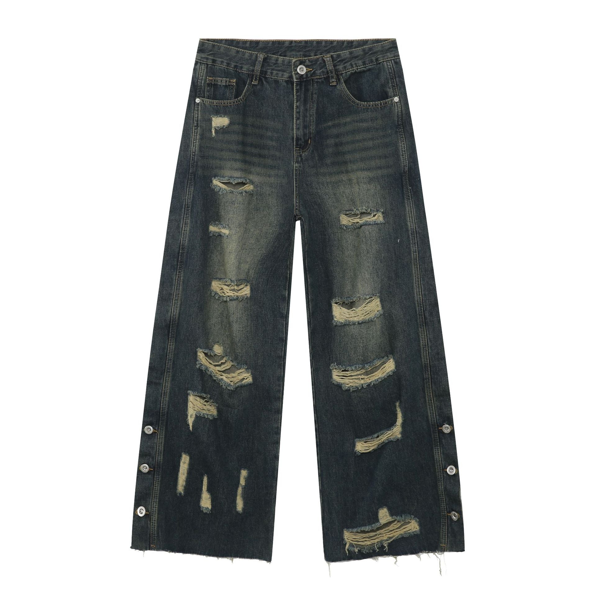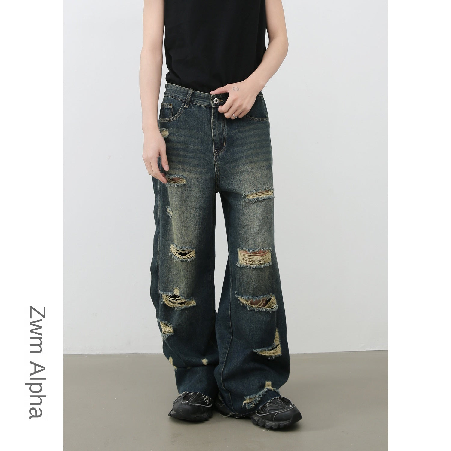 Introducing the Denim Frayed Hem Washed Wide-Leg Jeans for Men, a perfect blend of modern style and classic craftsmanship. These jeans are designed for those who appreciate quality and fashion in their everyday wear.