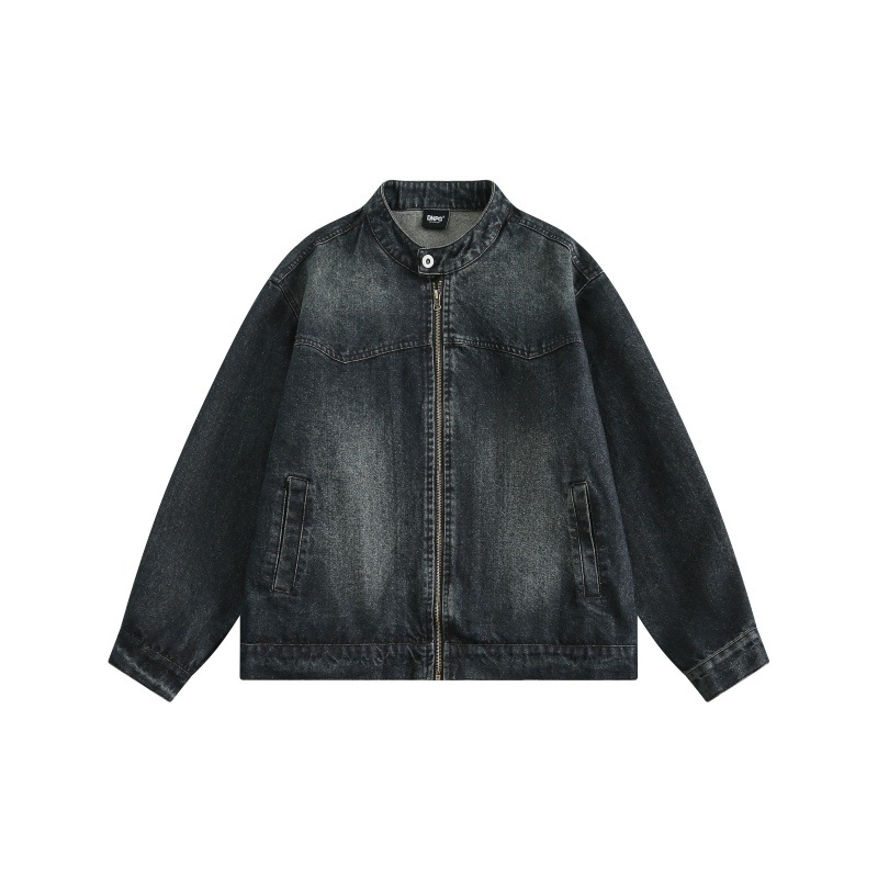 Distressed Denim Jacket Unisex Loose Casual Stand Collar Coat