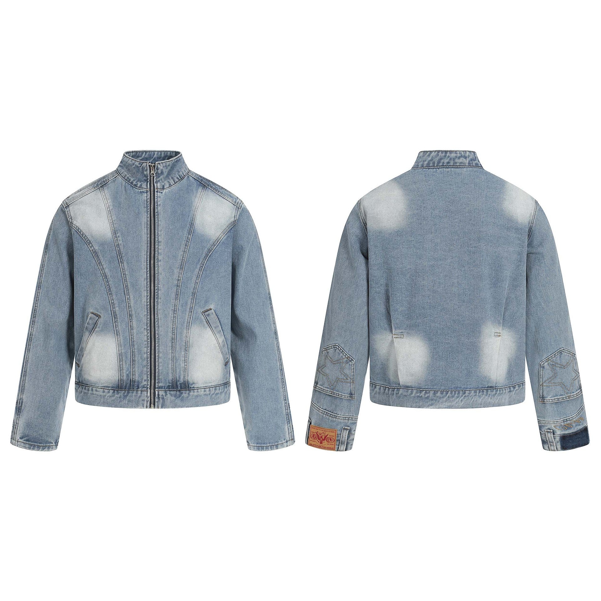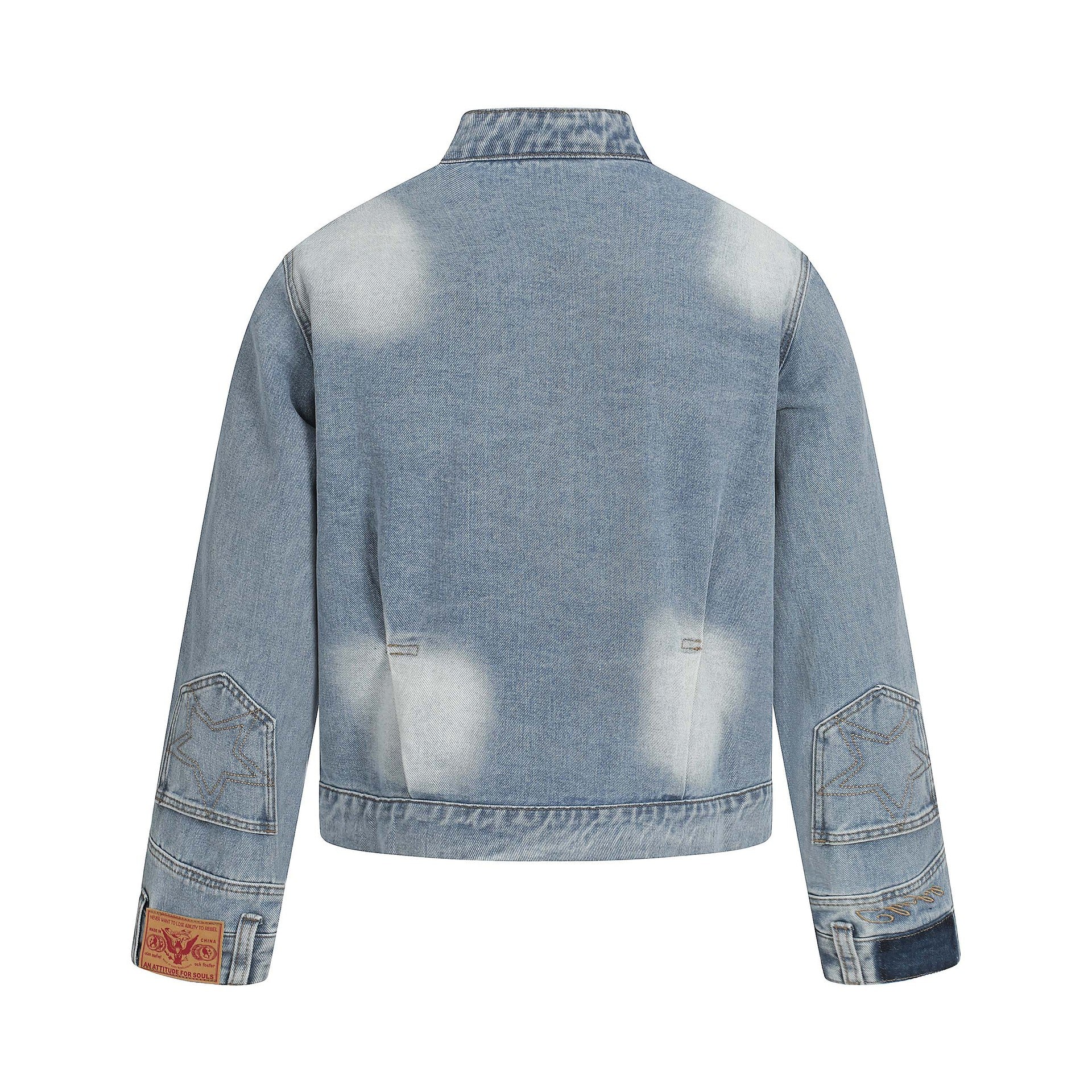 Distressed Unisex Reversed Denim Jacket with Hand-Sleeve