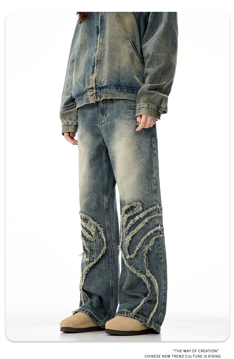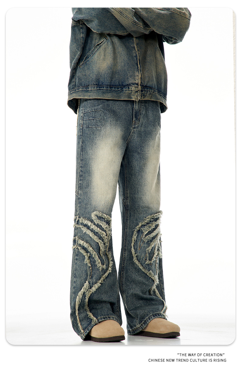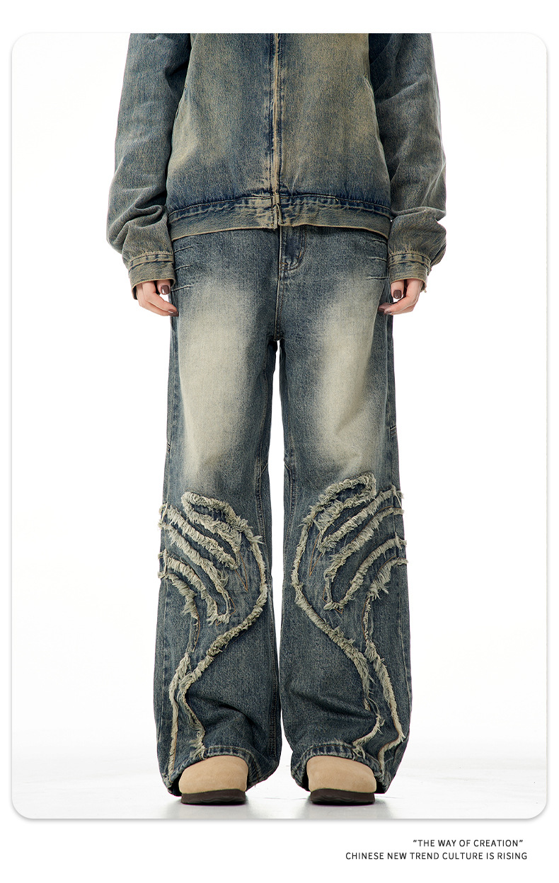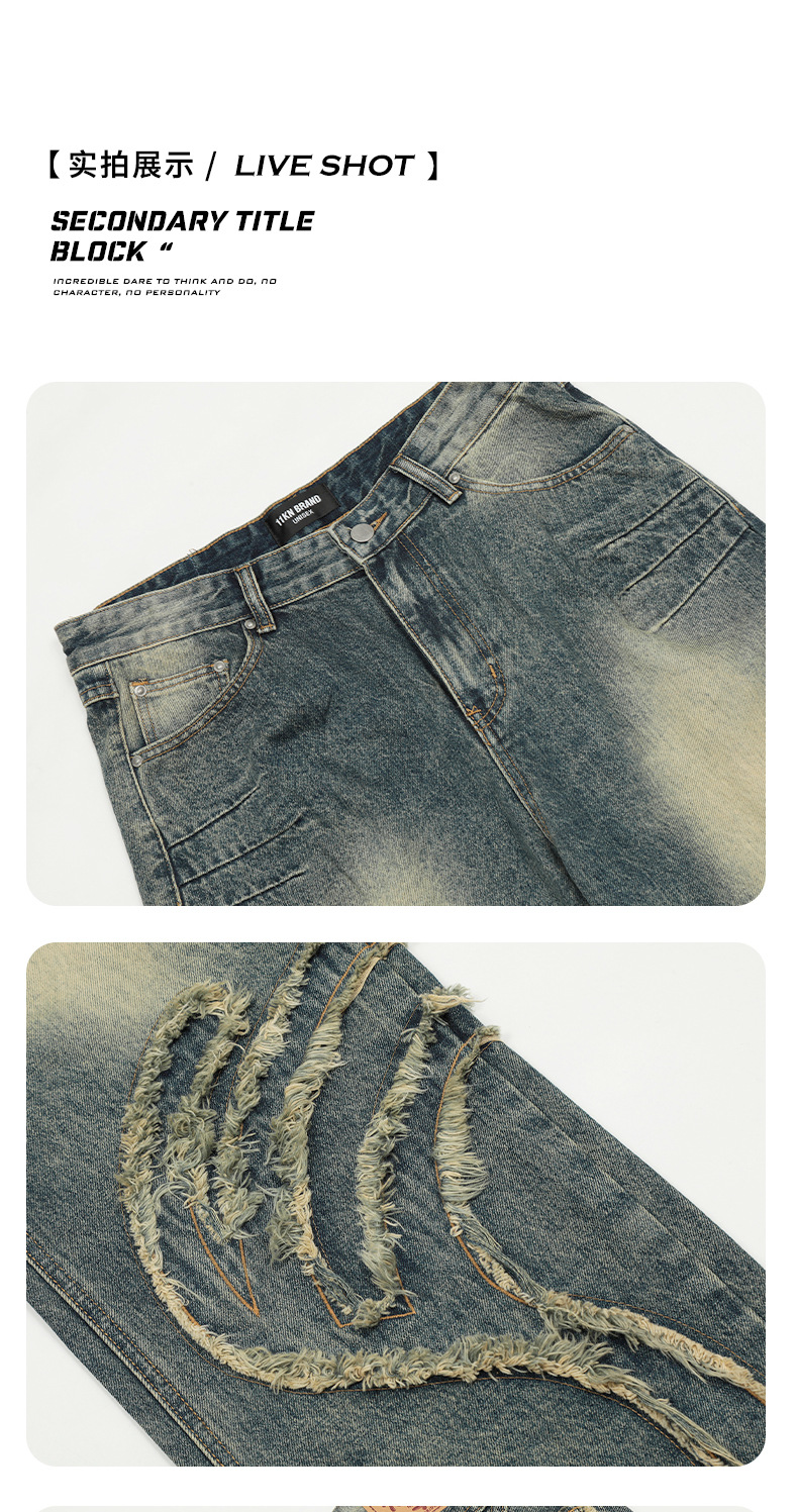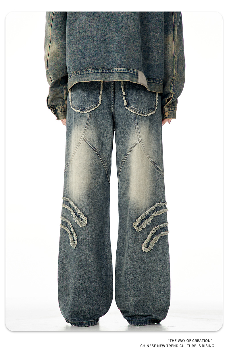 Elevate your streetwear style with our Faded Denim Pants in Vintage Blue. Designed for the modern individual, these high-street essential trousers bring together comfort and personality with their unique distressed finish.