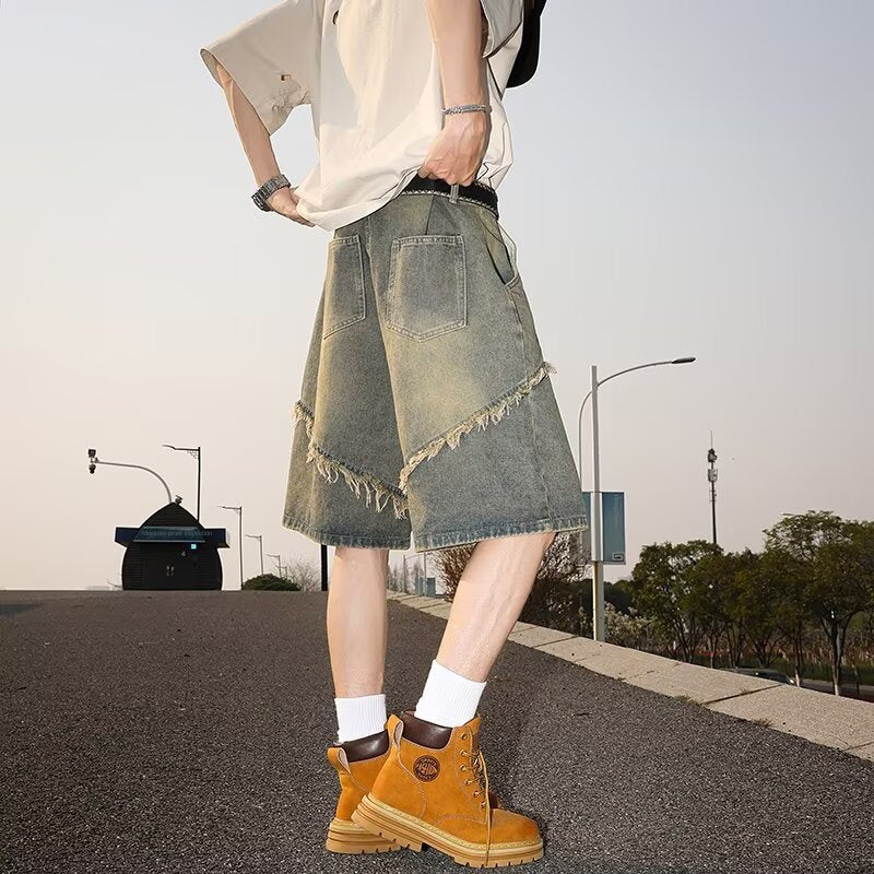 Handcrafted Fringed Edge Denim Shorts