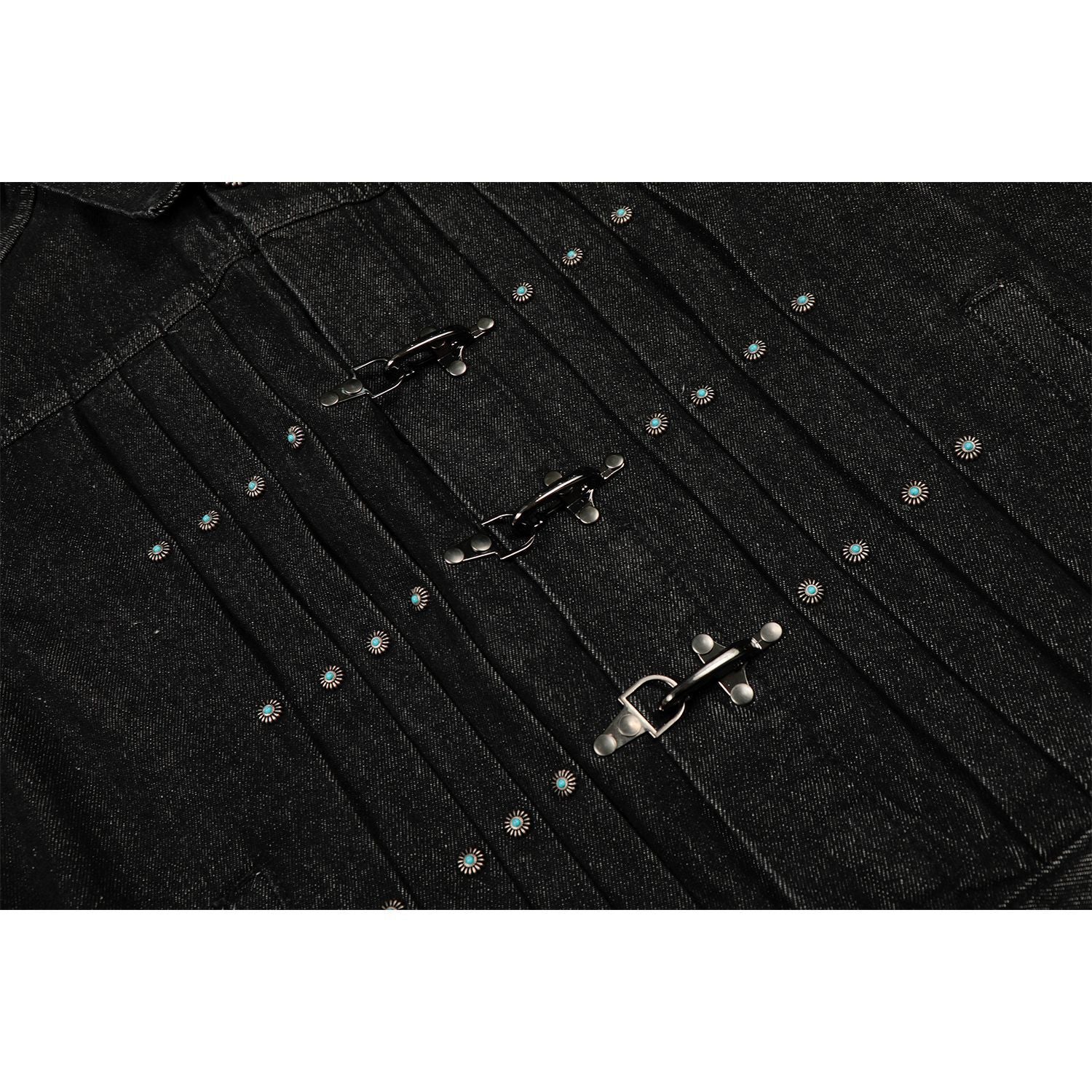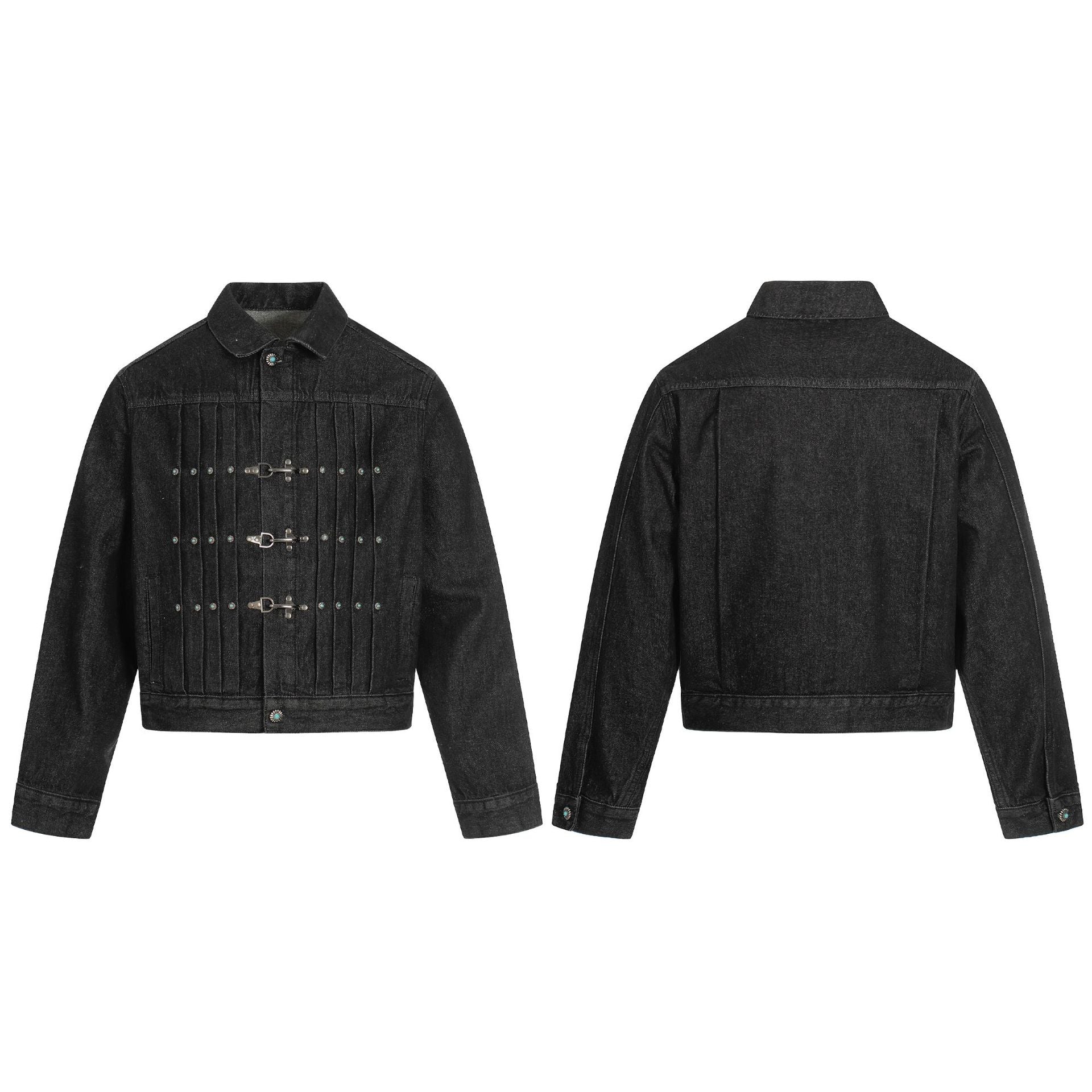 High-End Retro Raw Denim Men's Short Jacket with Crumpled Metal Button Design