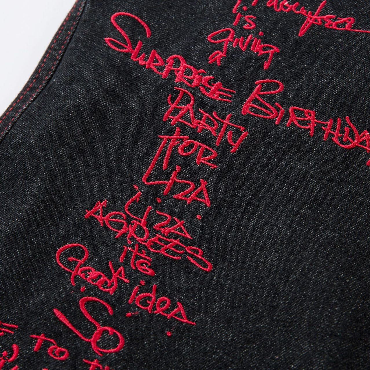 This pair of high-street denim long pants is designed for the modern youth who appreciate style and comfort. Featuring a unique color-block design with elegant embroidery, these pants stand out in any casual setting.