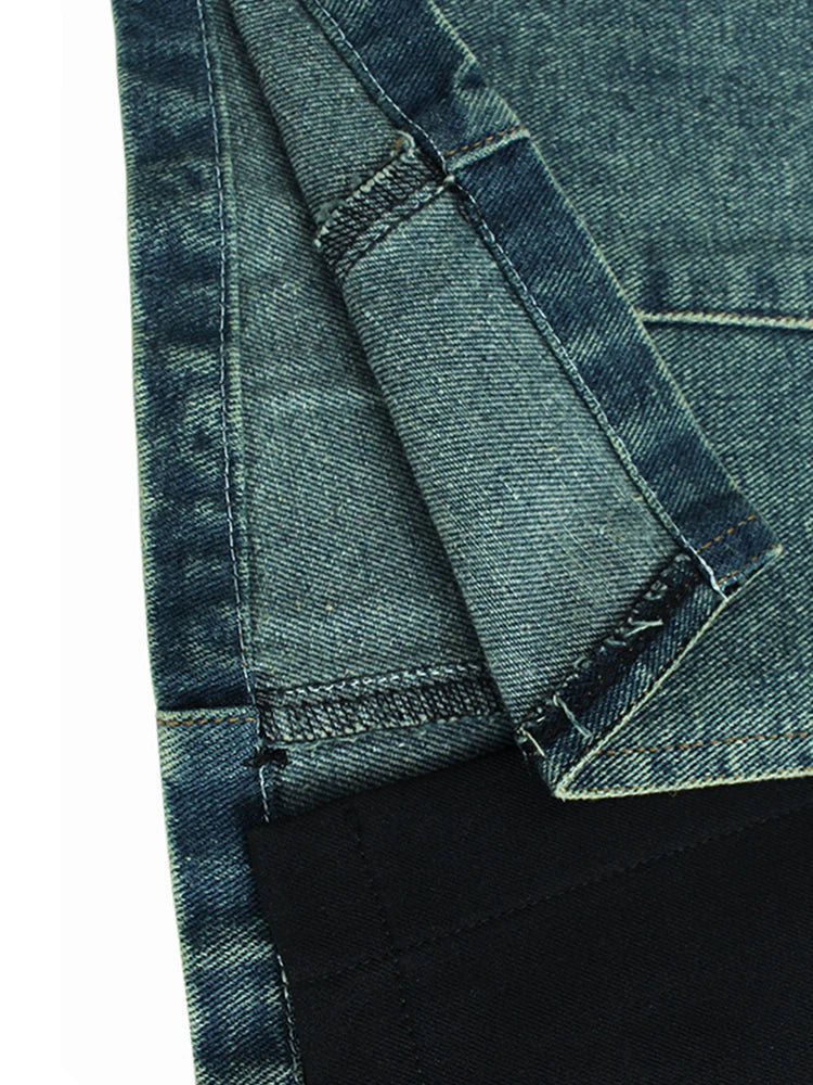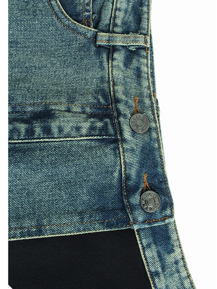Whether paired with a simple top or a stylish blouse, this skirt is perfect for creating a variety of looks. Embrace fashion with our High Waist Blue Denim Color-Block Midi Skirt and showcase your unique style wherever you go.
