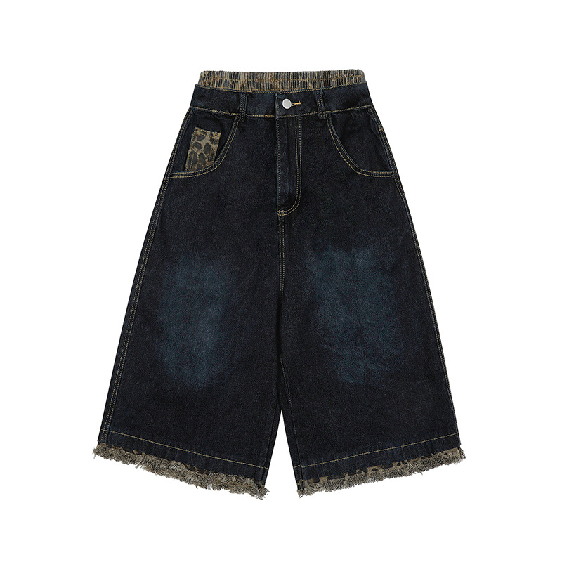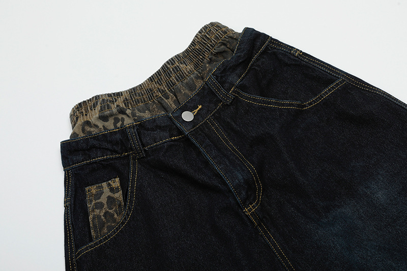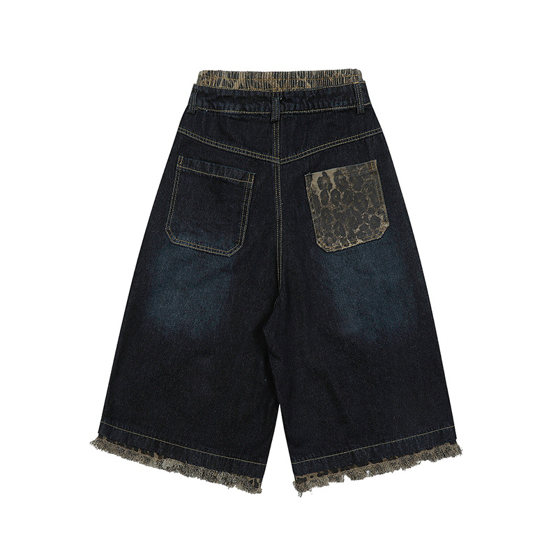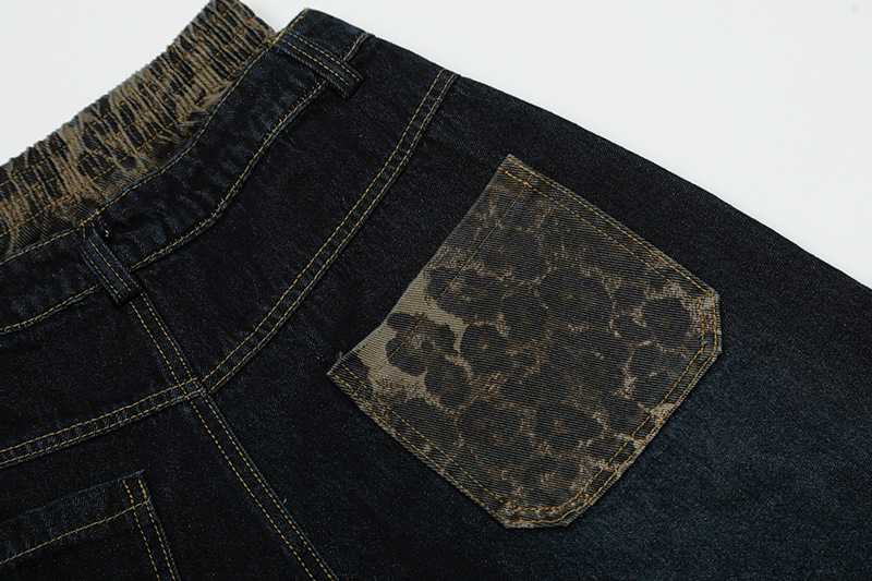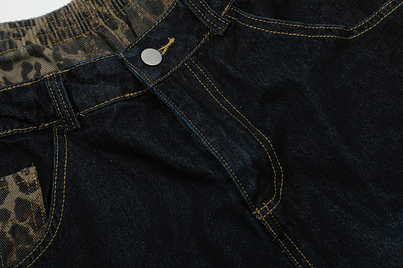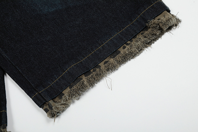 These shorts feature a unique leopard print patchwork design, embodying the spirit of street fashion while providing a canvas for your creativity. Whether paired with a graphic tee or a chic blouse, they elevate your outfit instantly. Make a statement this season with our Leopard Print Patchwork Brushed Seven Quarter Denim Shorts.