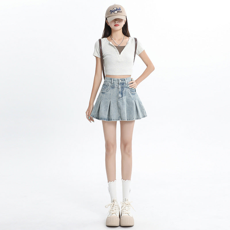 Light High-Waisted A-Line Denim Skirt for Women