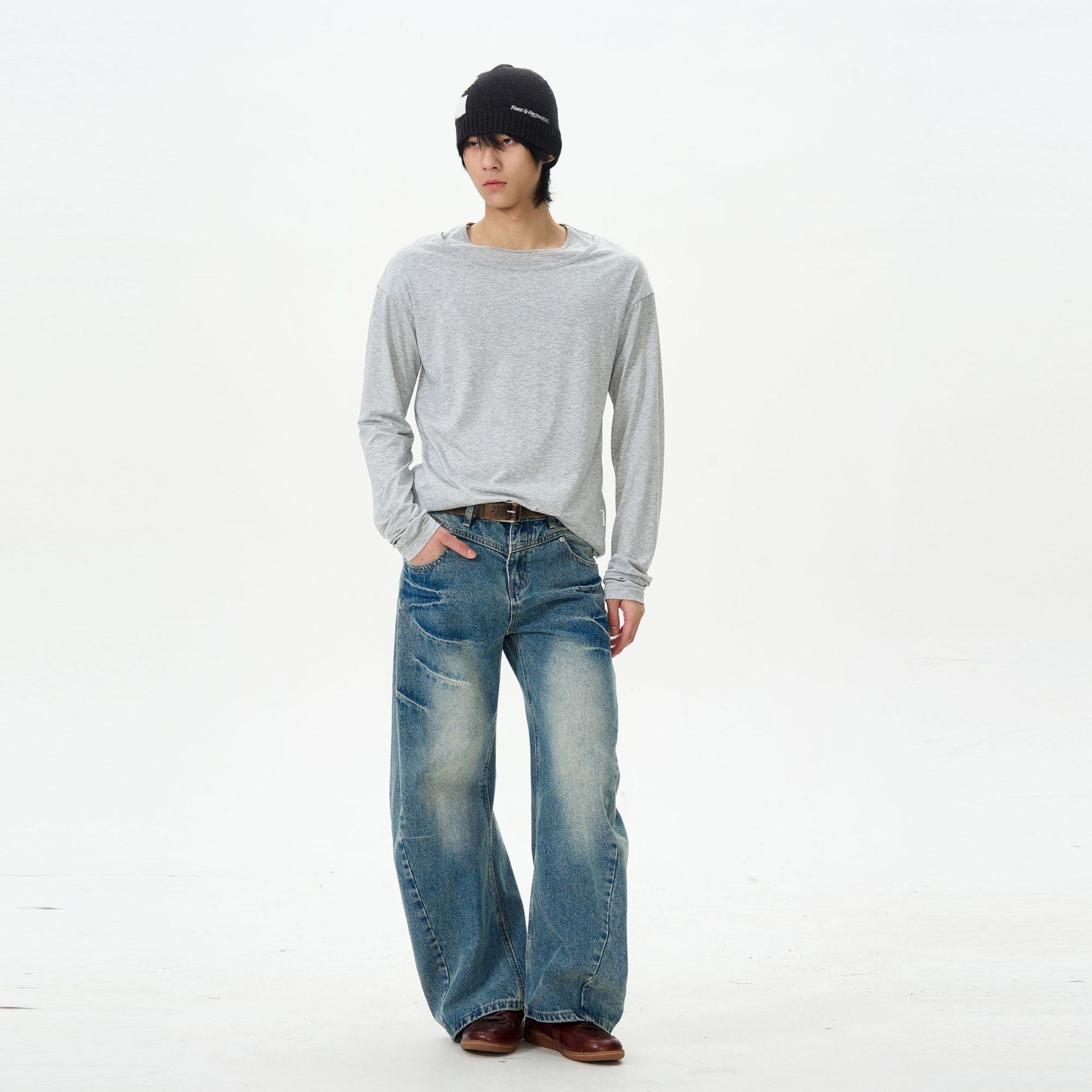 Discover the perfect blend of modern streetwear and classic craftsmanship with our Lightning Crack Silhouette Curved Knife Jeans. Designed for the discerning gentleman, these jeans are not just a fashion statement—they're a testament to quality and style.