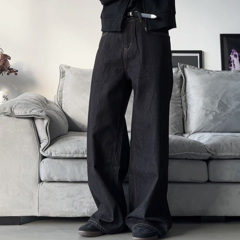 Loose Men's Denim Casual Pants with Relaxed Fit and Floor-Dragging Effect