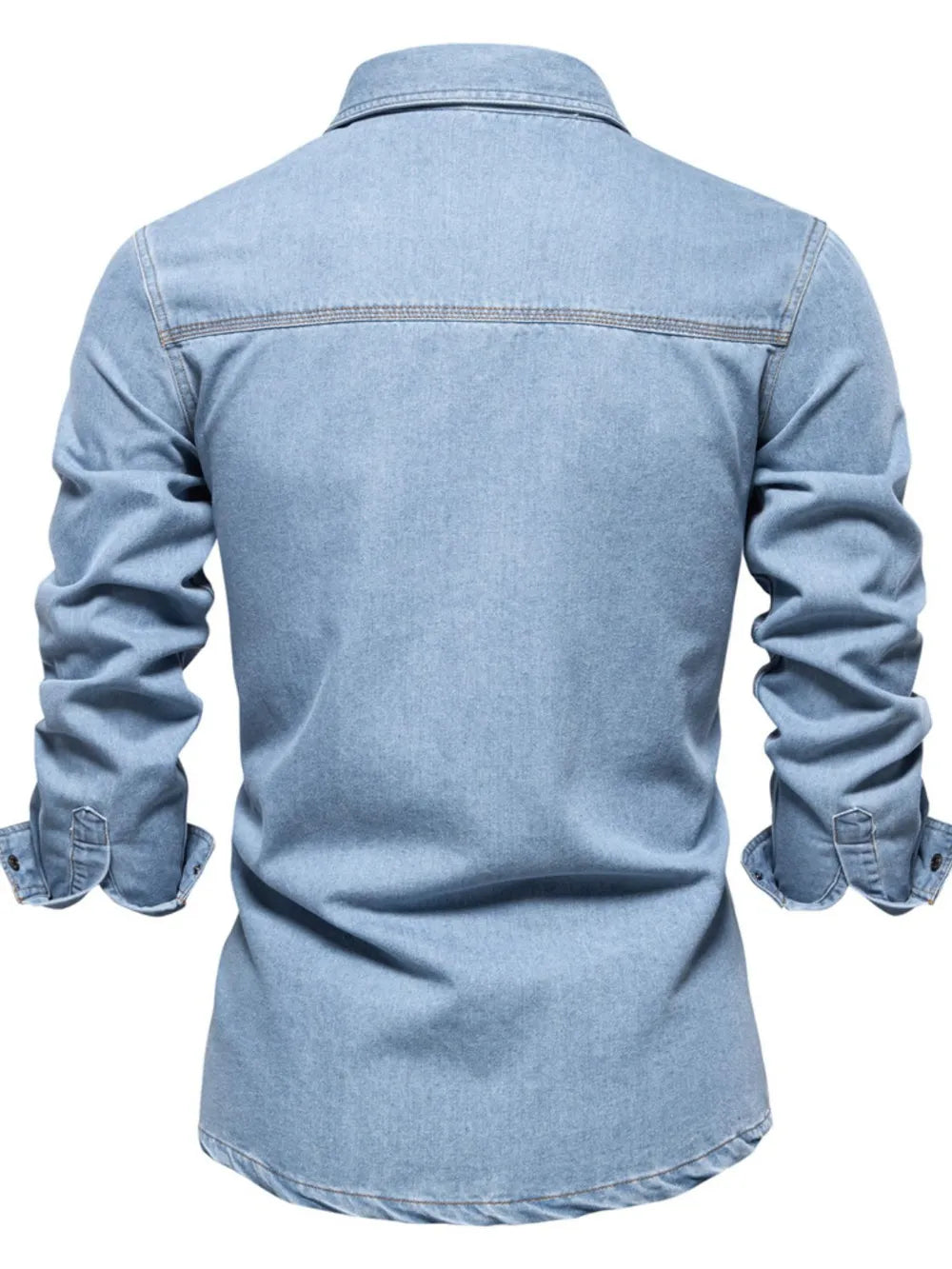 This Men's Collared Neck Denim Shirt is a perfect blend of style and functionality, designed for the modern man who appreciates both quality and comfort.