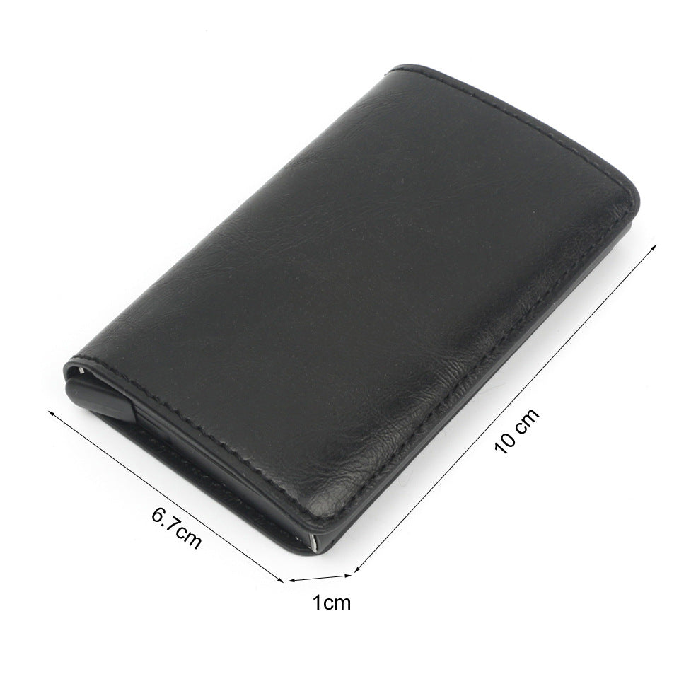 This premium Men's Metal Card Holder combines style and functionality, making it the perfect accessory for the modern man. Crafted from high-quality PU leather and durable aluminum alloy, this RFID wallet offers both elegance and security.