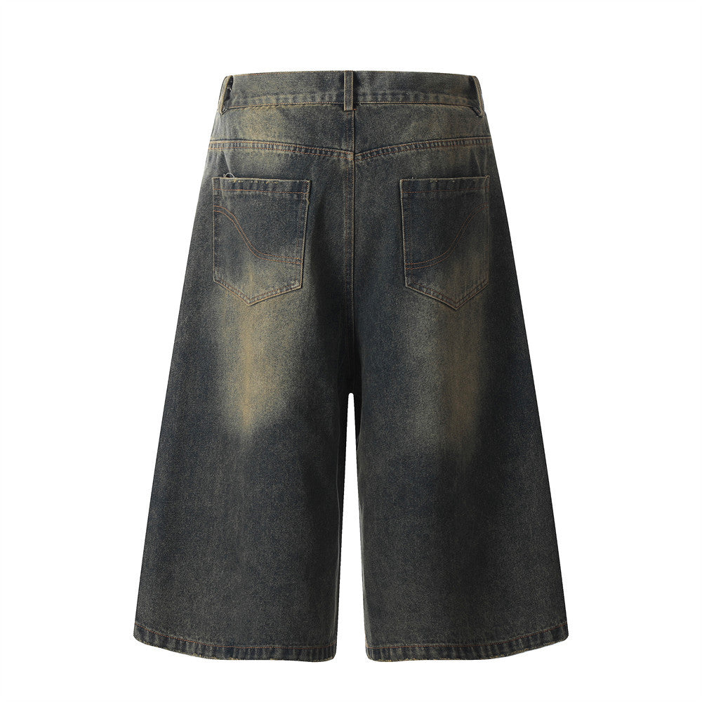 Men's Retro Distressed Denim Three-Quarter Pants