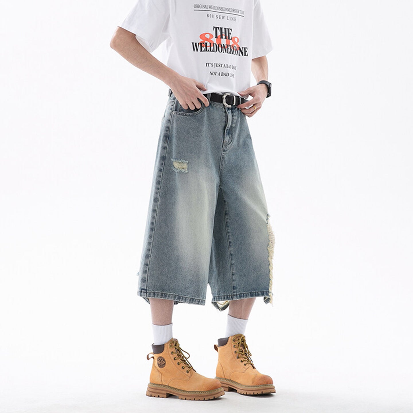 Men's Ripped Denim Cropped Pants - Summer Lightweight Design