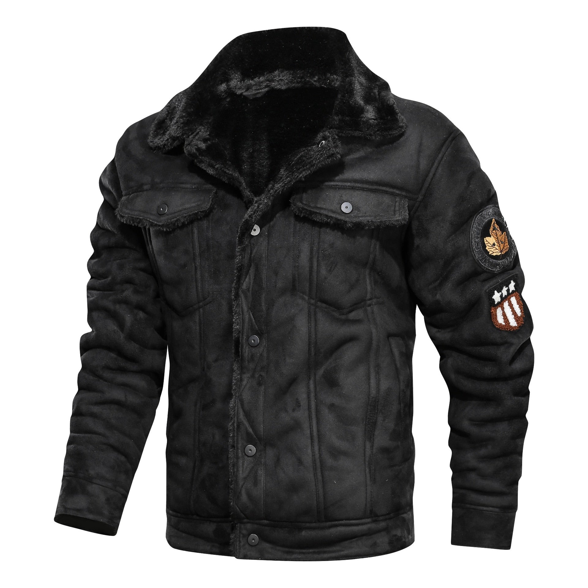 Men's Thick Warm Fleece Leather Jacket Coat - Casual Military Bomber