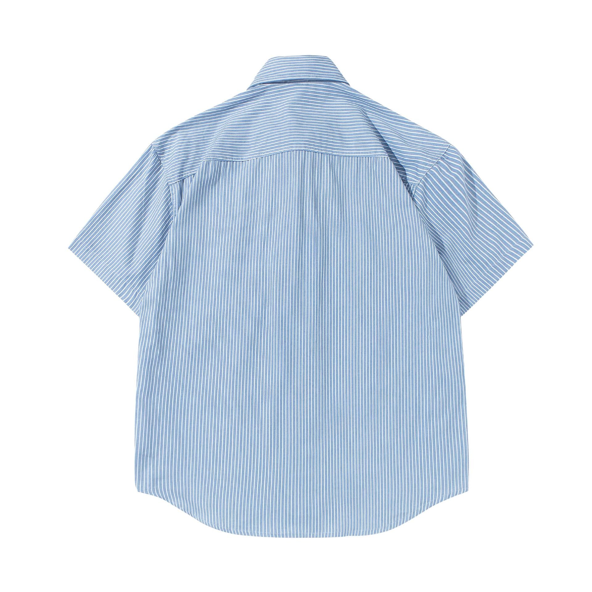 This minimally striped denim embroidered short-sleeved shirt for men combines Japanese workwear style with modern aesthetics. Crafted for comfort and versatility, it is a perfect addition to your casual wardrobe.