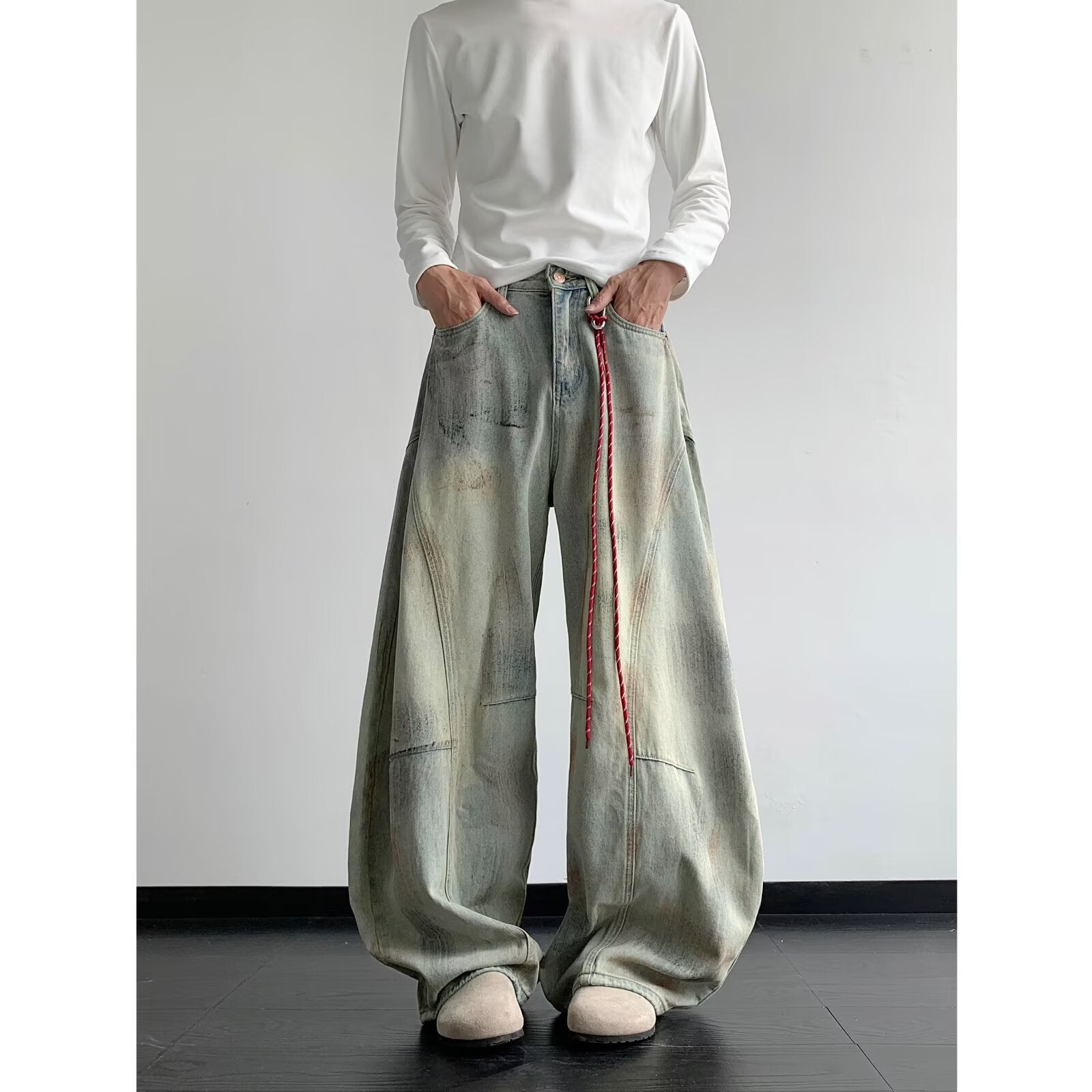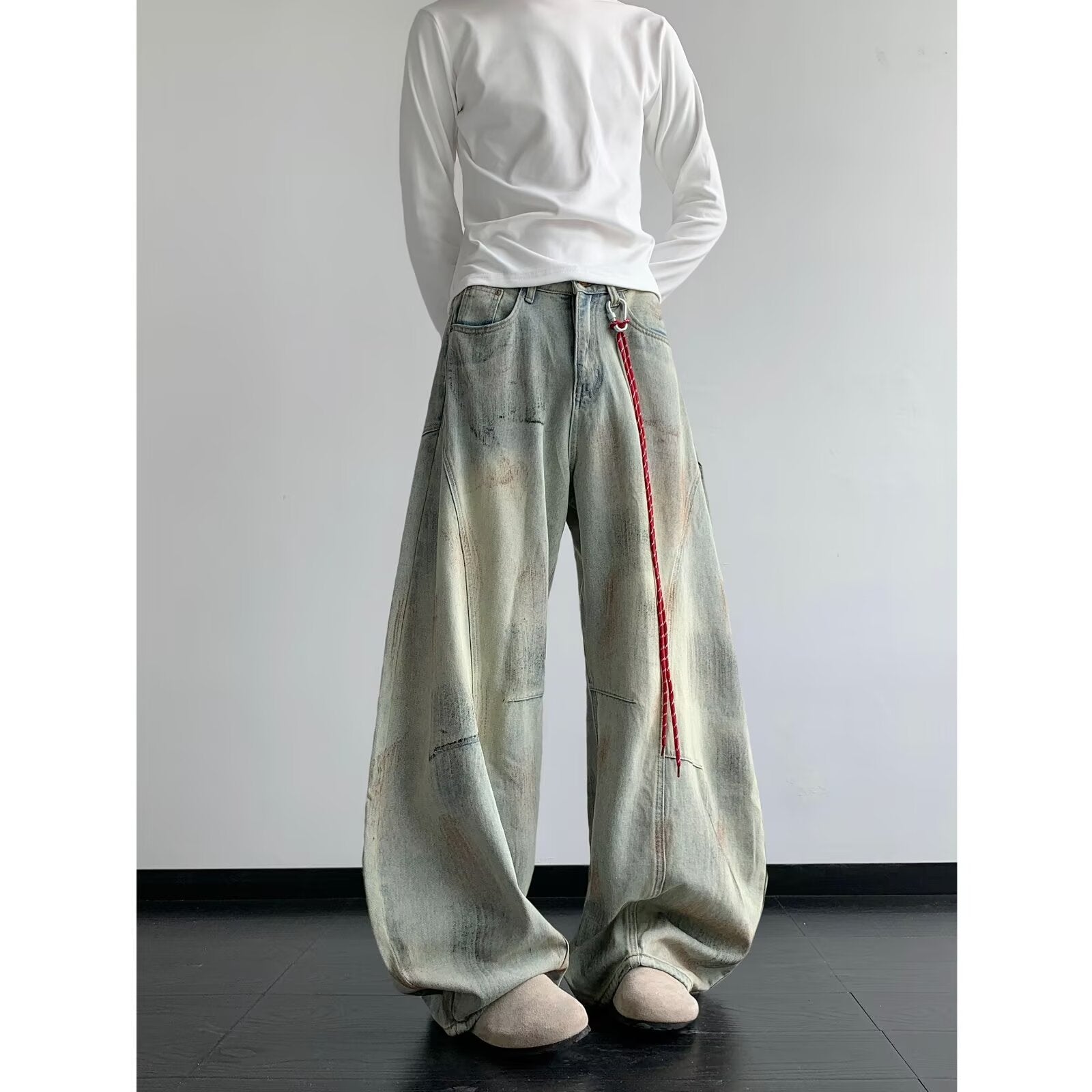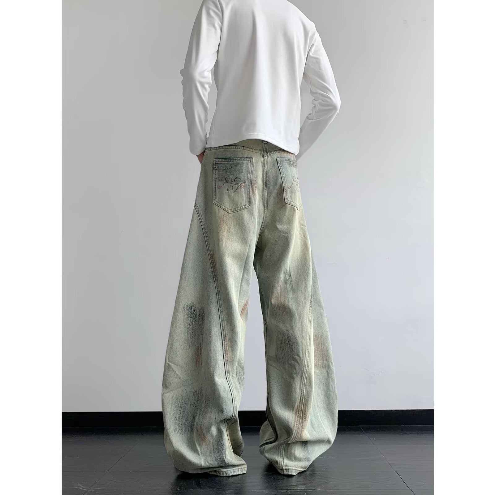 Introducing our Old Deconstruction Curved Knife Denim Loose Wide Leg Pants, where modern style meets superior craftsmanship. Perfect for casual outings, these pants are designed with a unique cut that captures the essence of contemporary fashion while ensuring ultimate comfort.