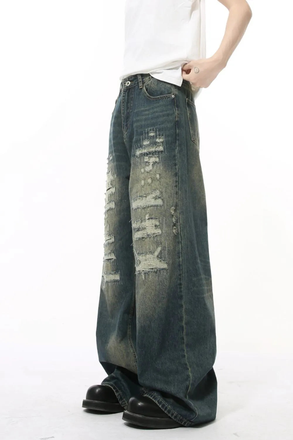 Premium Distressed Wide Leg Jeans - Luxury Japanese Denim
