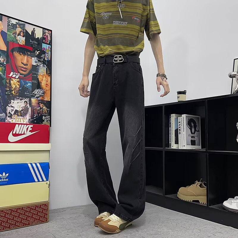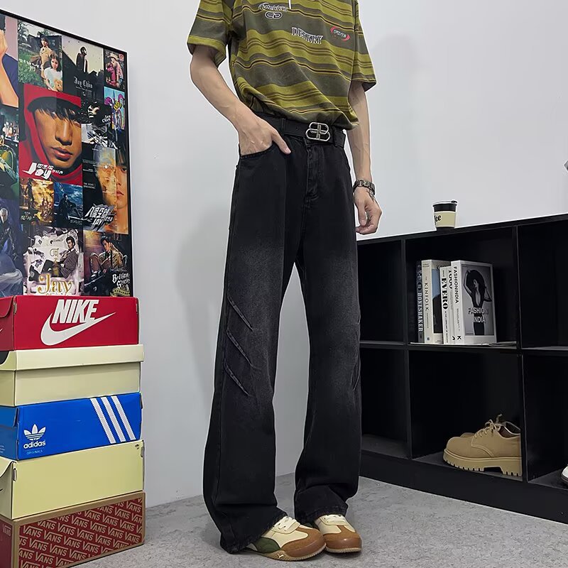 Invest in a pair of jeans that not only enhances your wardrobe but also speaks volumes about your style. Experience the perfect blend of comfort and sophistication with our Retro Blue Washed Pleated Gradient Curved Knife Jeans.