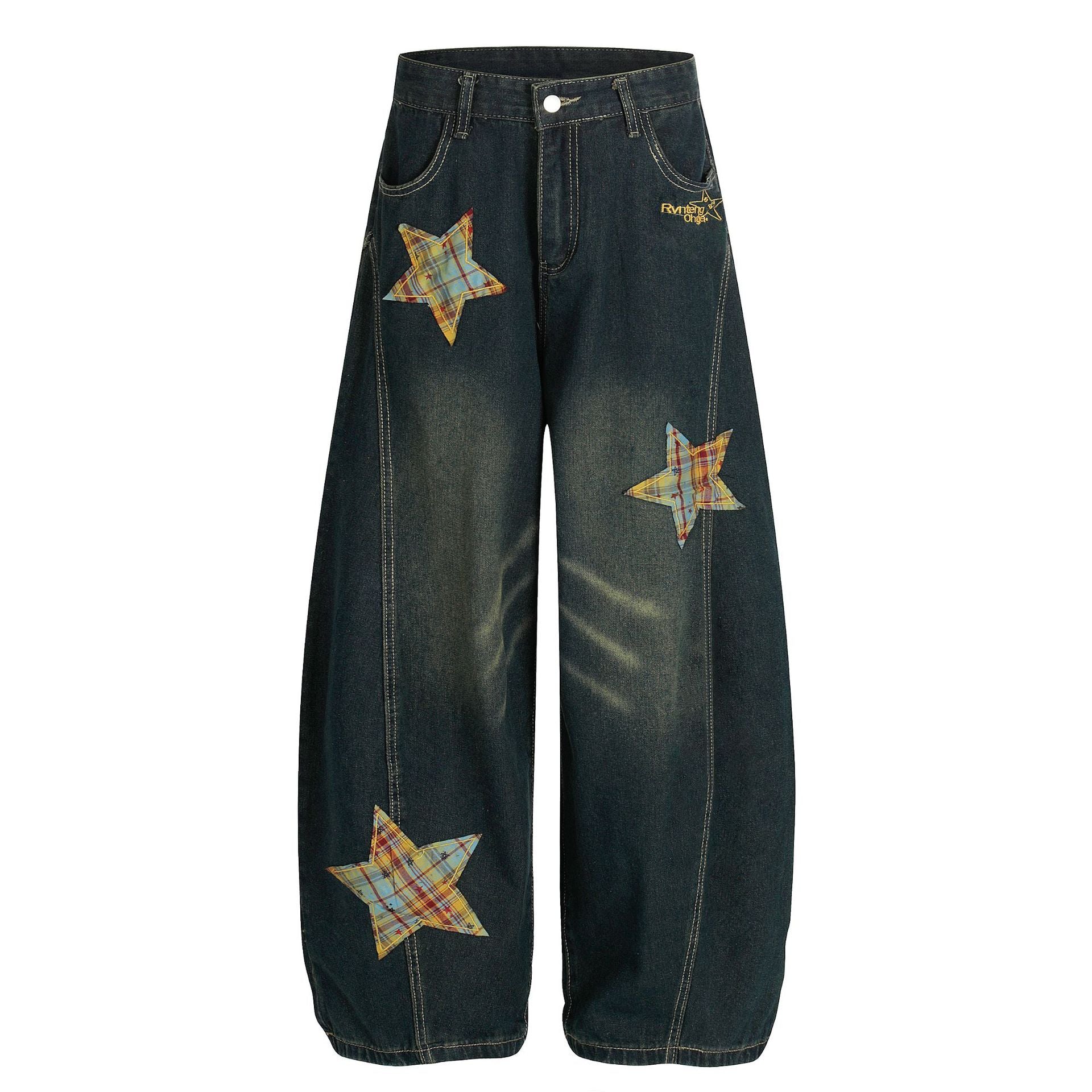 Step into a world of vintage charm and contemporary style with our Retro Curved Knife Denim Wide Leg Pants. Designed for comfort and flair, these pants are not just a piece of clothing; they are a statement. Featuring a unique five-pointed star embroidery, they bring a playful twist to classic denim.
