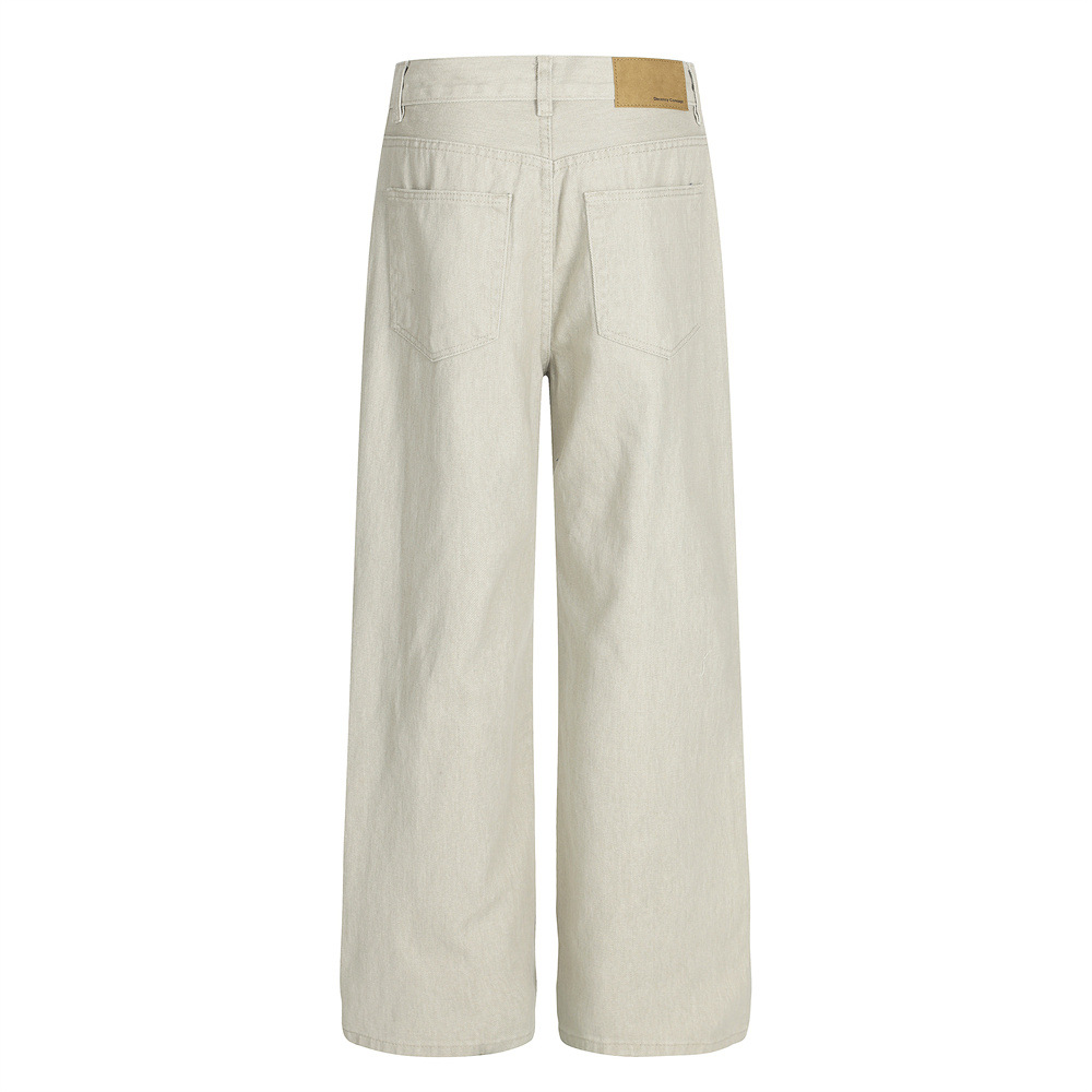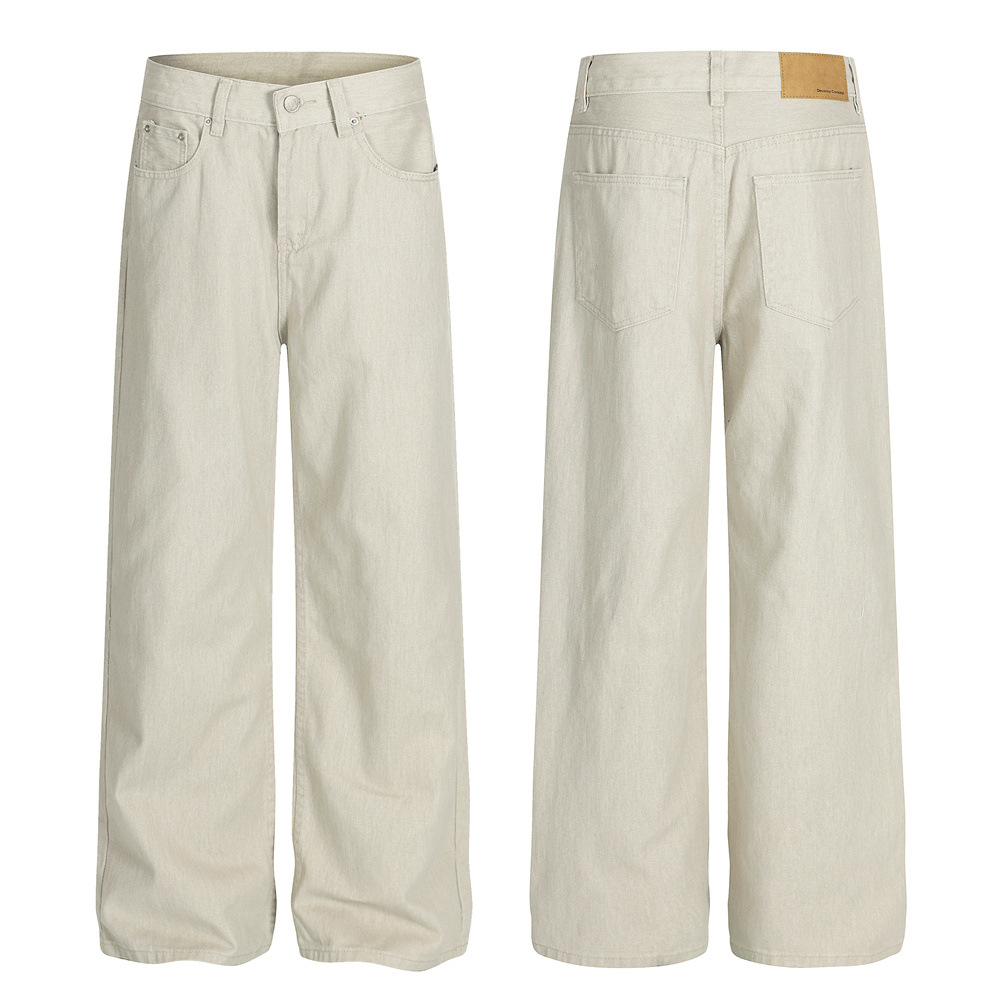 Retro Men's Denim Pants, Simple Solid Color Straight Leg Brand Versatile Loose Fit Men's Trousers