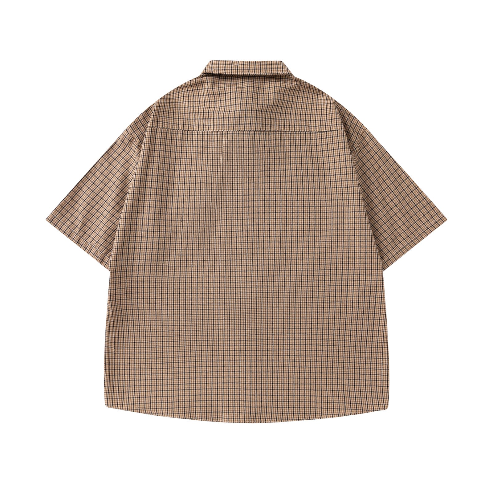 Retro Plaid Tie Collar Short Sleeve Shirt for Men and Women