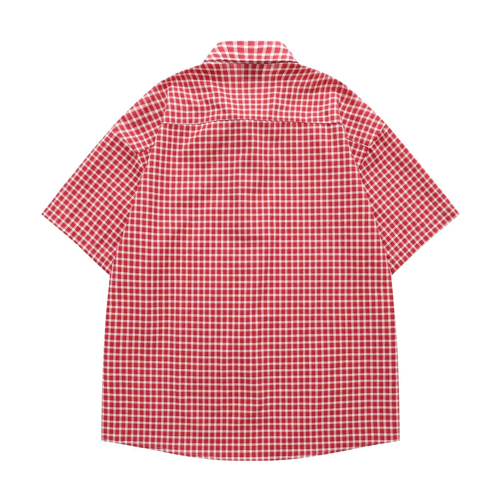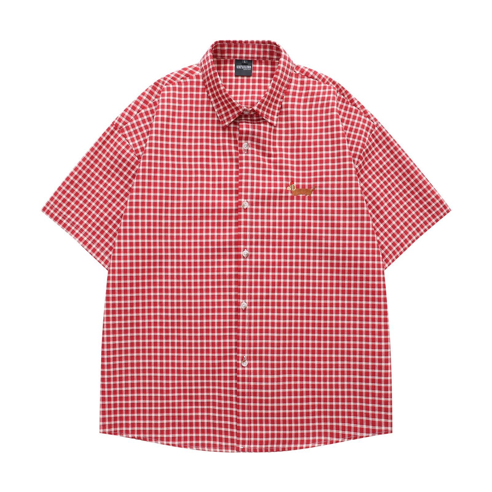 Retro Sausage Dog Embroidered Plaid Short Sleeve Shirt for Men and Women
