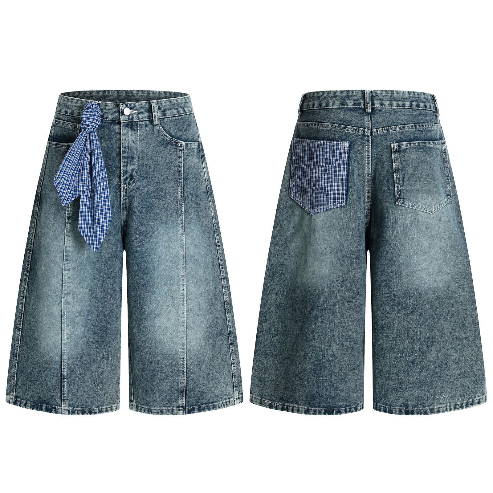 Step into style with our Retro Washed Ribbon Unique Design Seven-Quarter Denim Pants. Perfect for a laid-back summer day, these pants blend comfort with a unique aesthetic that sets you apart from the crowd.