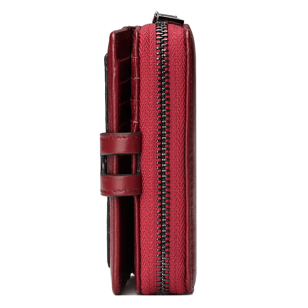 RFID Leather Wallet Cowhide - Zipper Buckle Bag