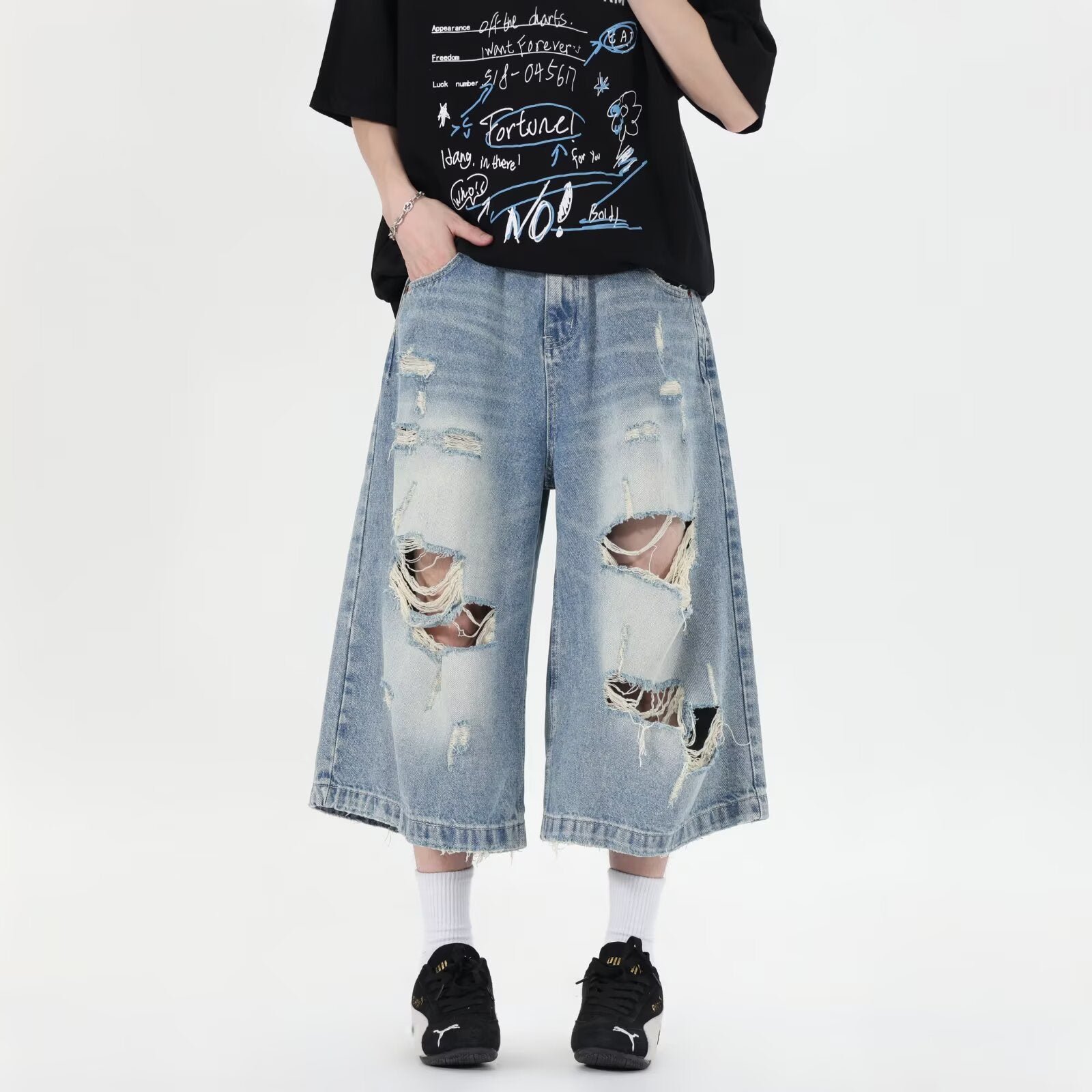 Ripped Denim Loose Washed Distressed Wide Leg Shorts