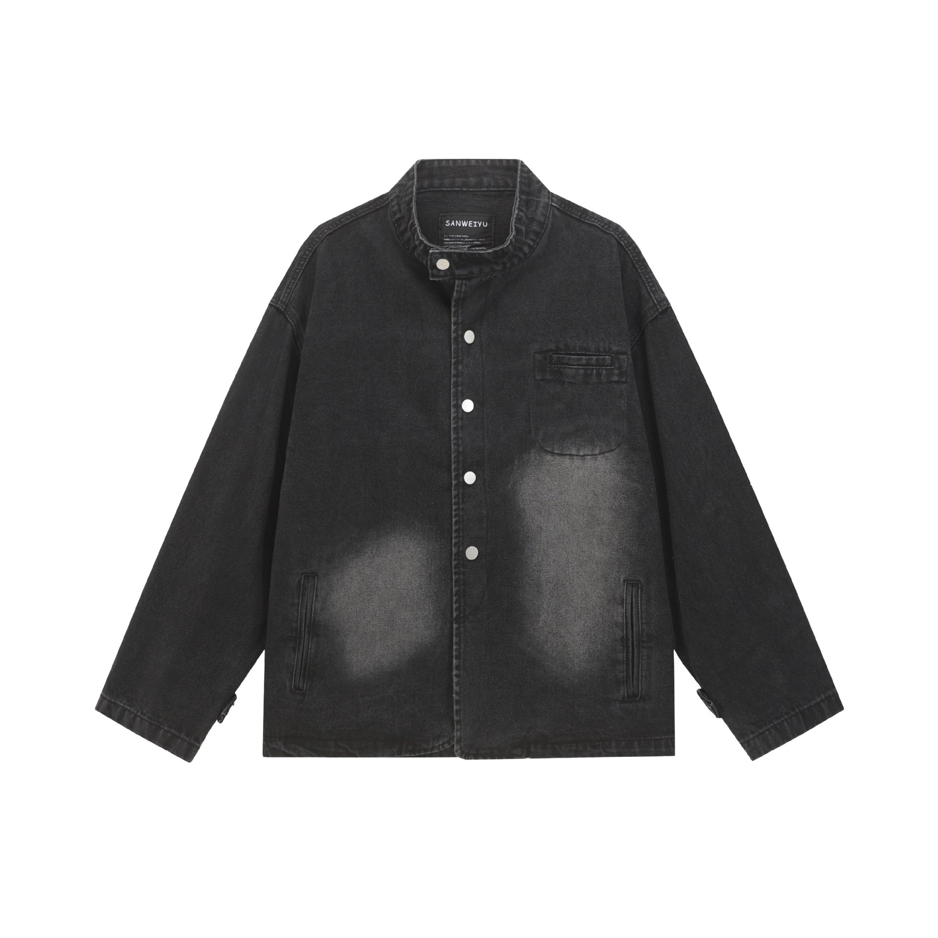 Solid Color Button-Up Stand Collar Loose Fit Denim Jacket