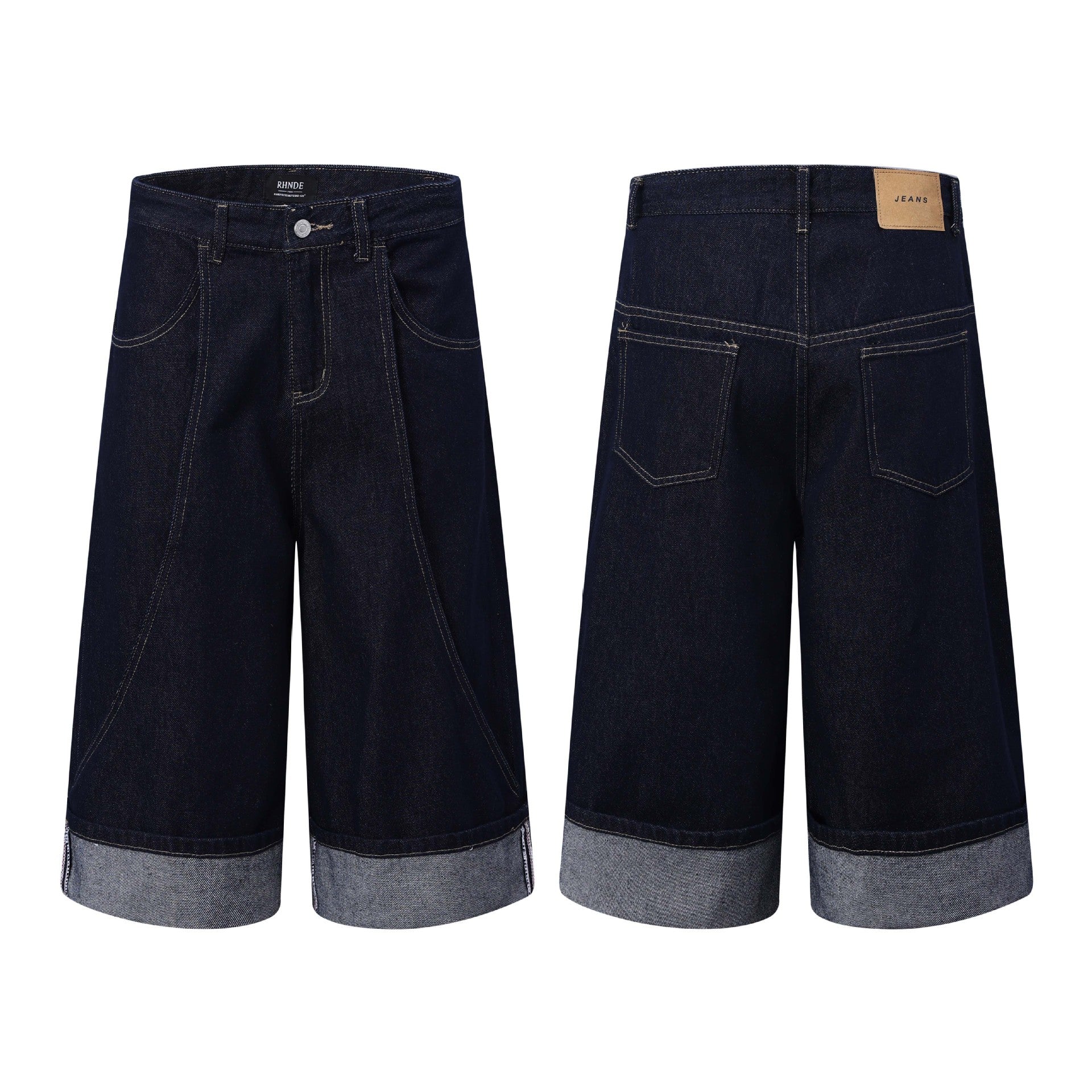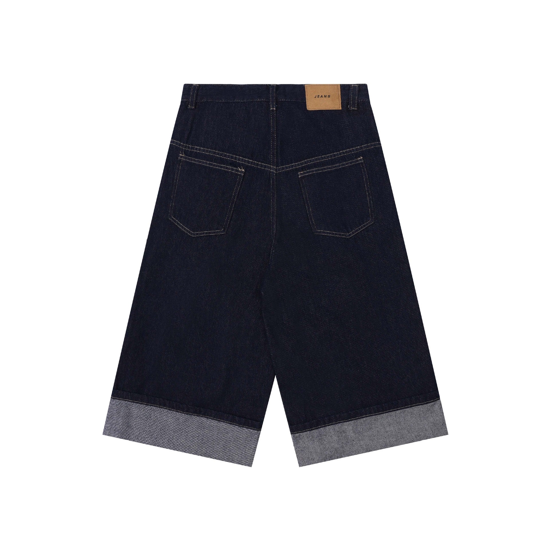 Spliced Hem Denim Shorts - Unisex Loose Fit
