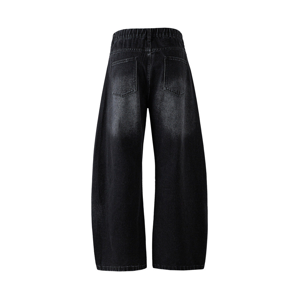 Men's Denim Pants, Dye-Indigo Cut-Offs, Casual Loose Fit, Wide Leg