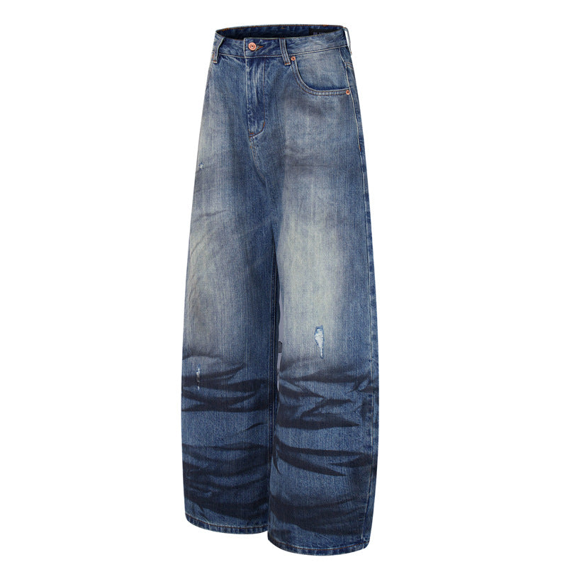 Vintage Distressed Washed Knife-Edge Denim Pants