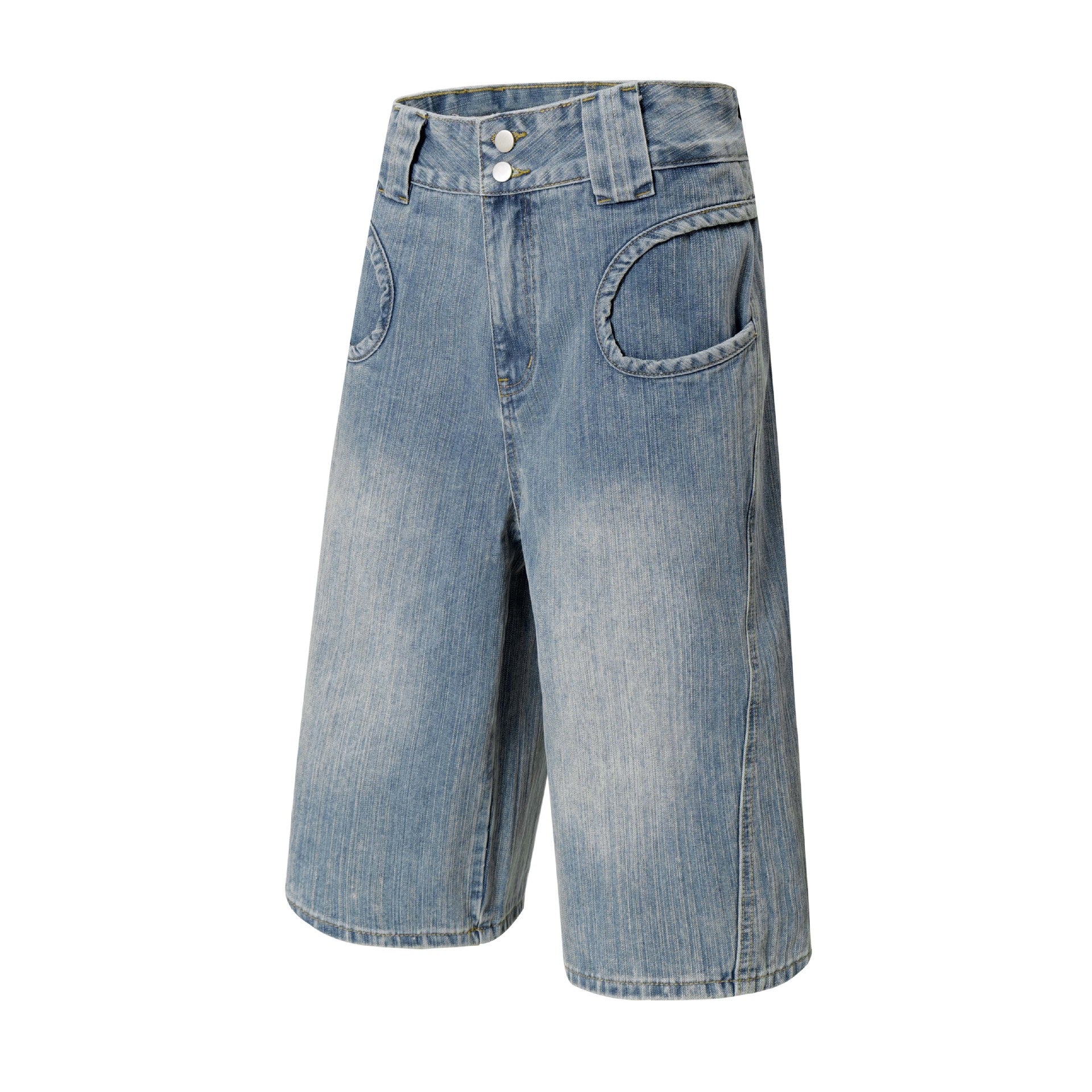Washed Vintage Denim Shorts with Unique Pocket Design