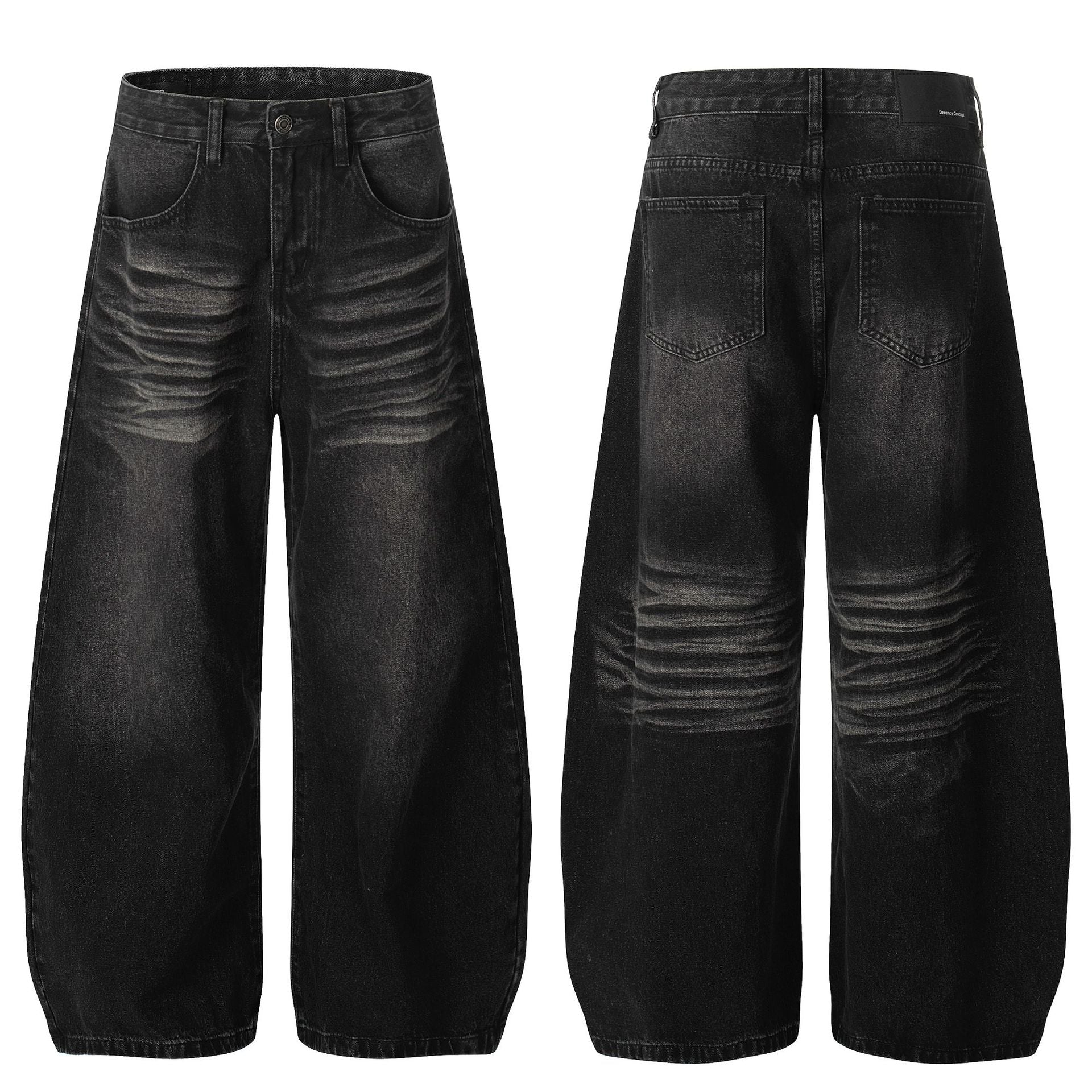 Style Washed Black Vintage Cat-Whisker Pattern Design Men's Loose Knife Cut Jeans