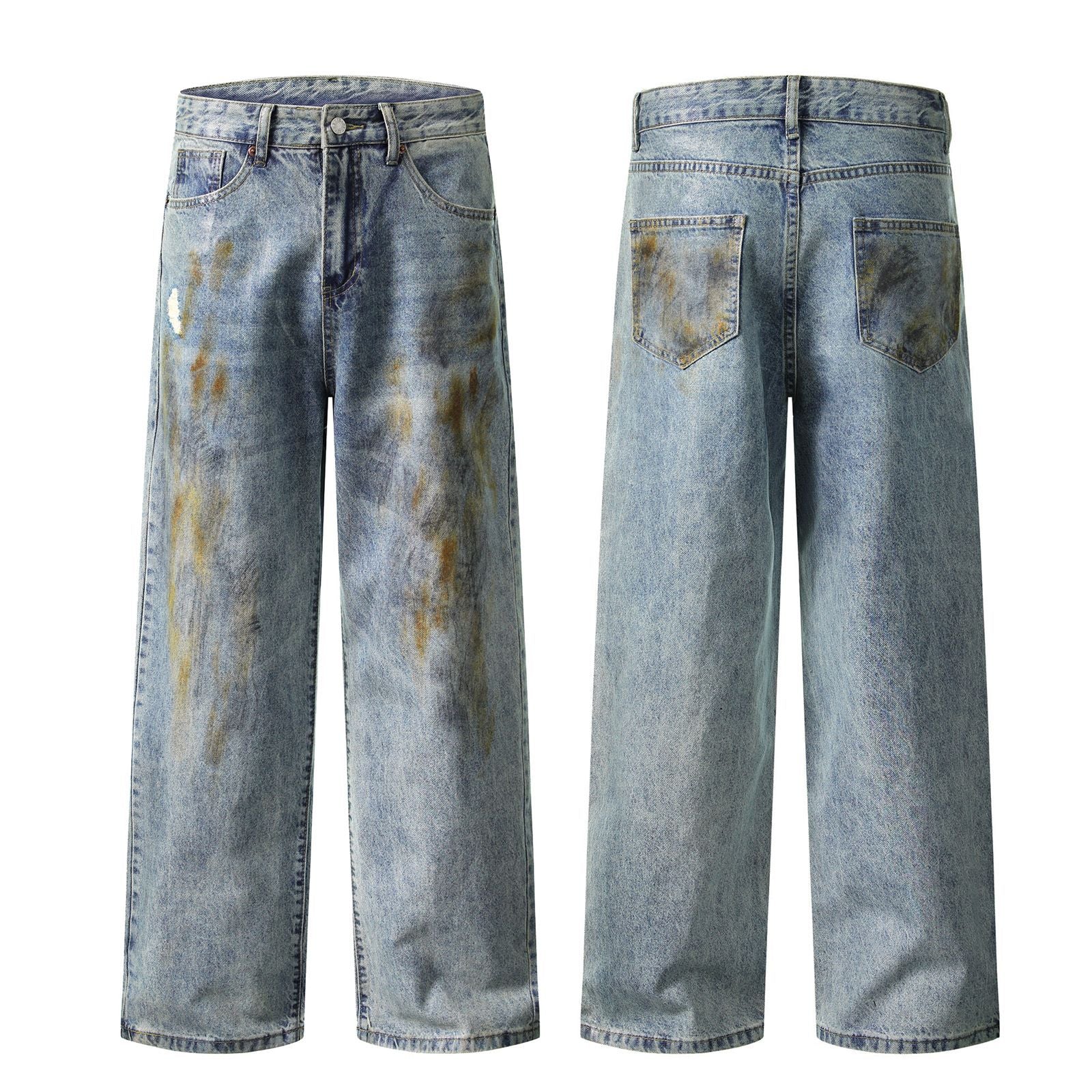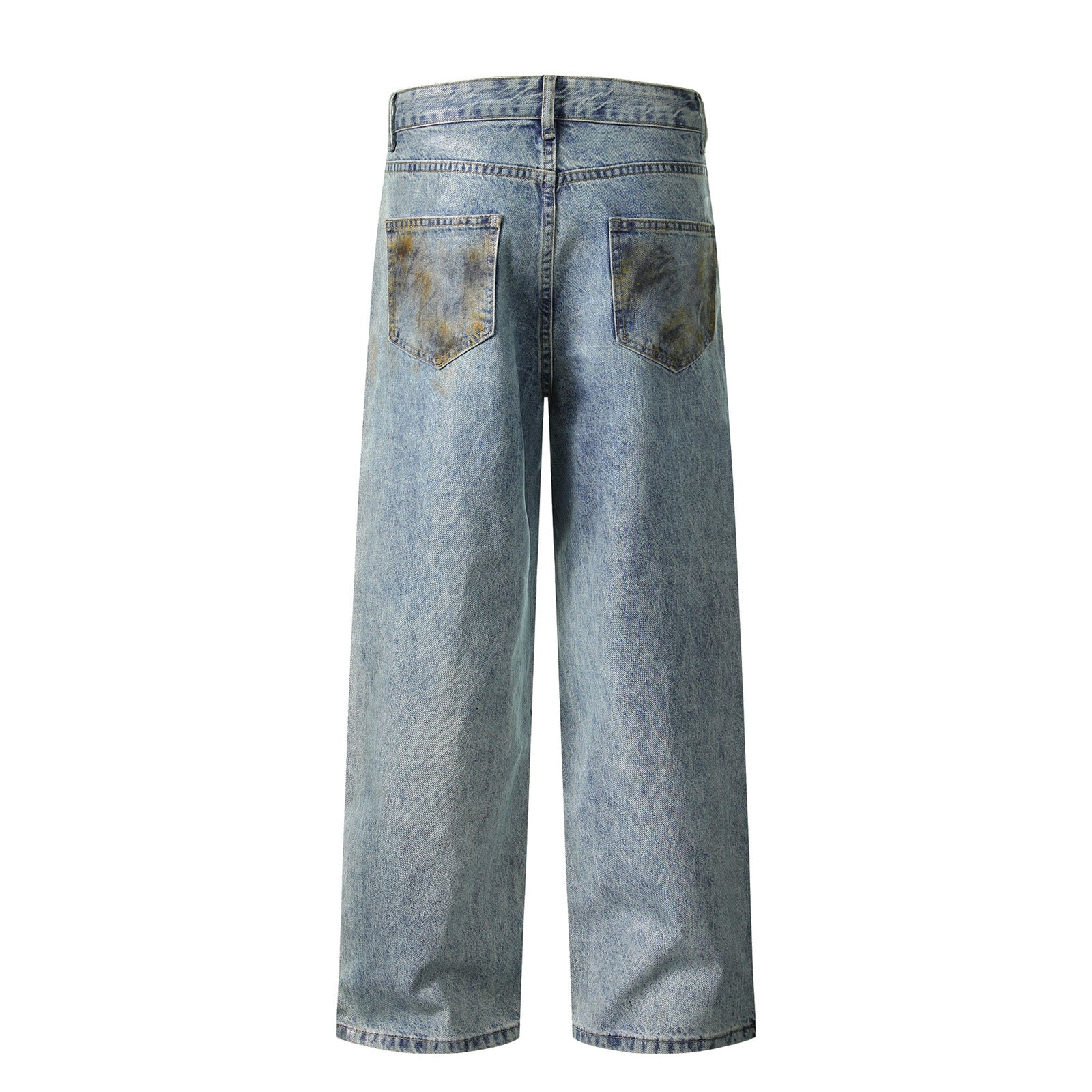 Unisex Distressed Denim Pants - Loose Straight Fit Trousers
