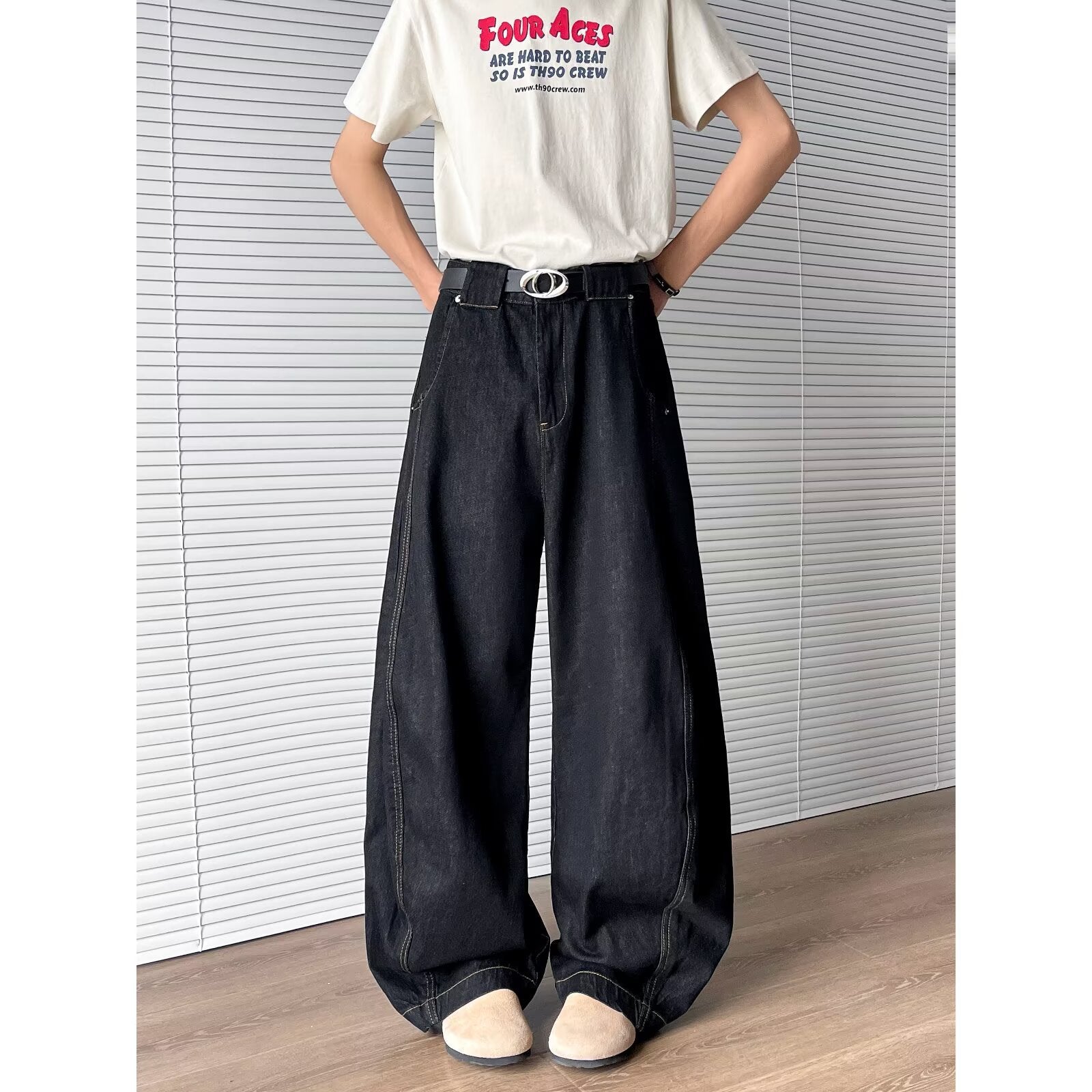 Versatile Loose Straight Leg Denim Wide Leg Pants