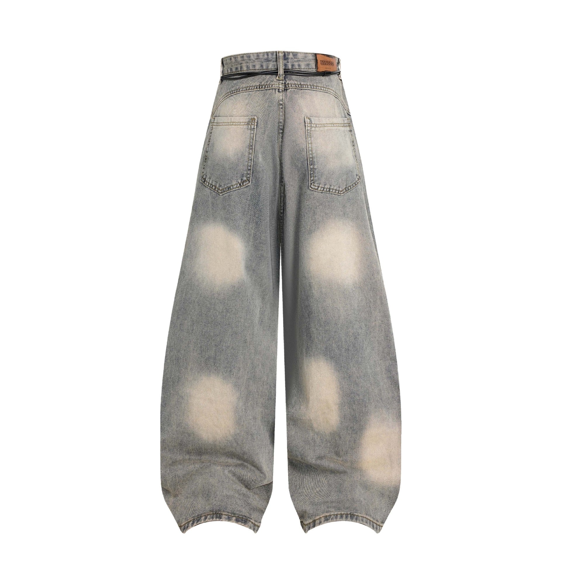 Vintage Distressed Tie-Dye Pleated Denim Pants Unisex Wide-Leg Trousers