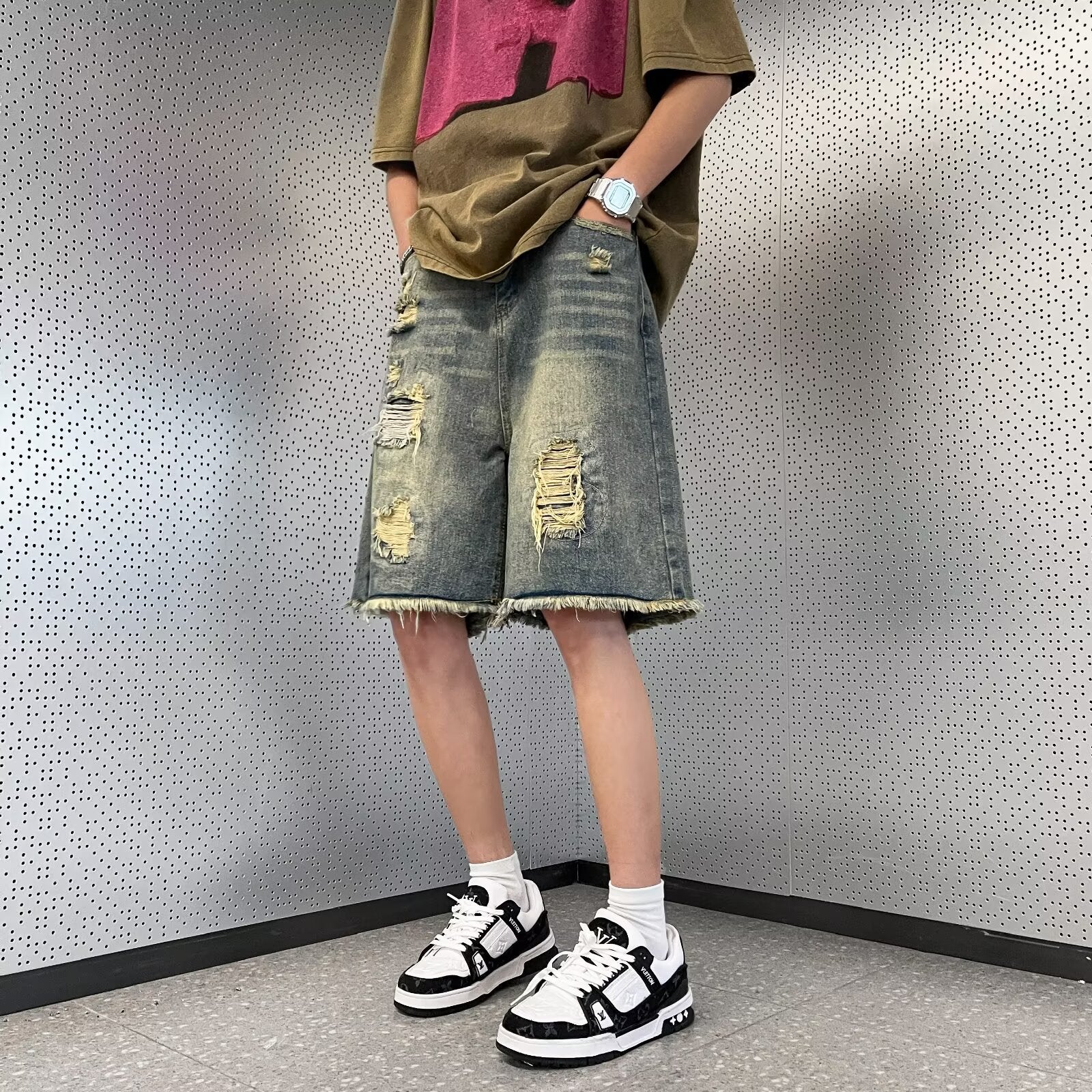 Whether you're heading to the beach, a picnic, or a casual outing, these shorts will keep you stylish and comfortable. The vintage distressed look adds a unique touch, making each pair one-of-a-kind.
