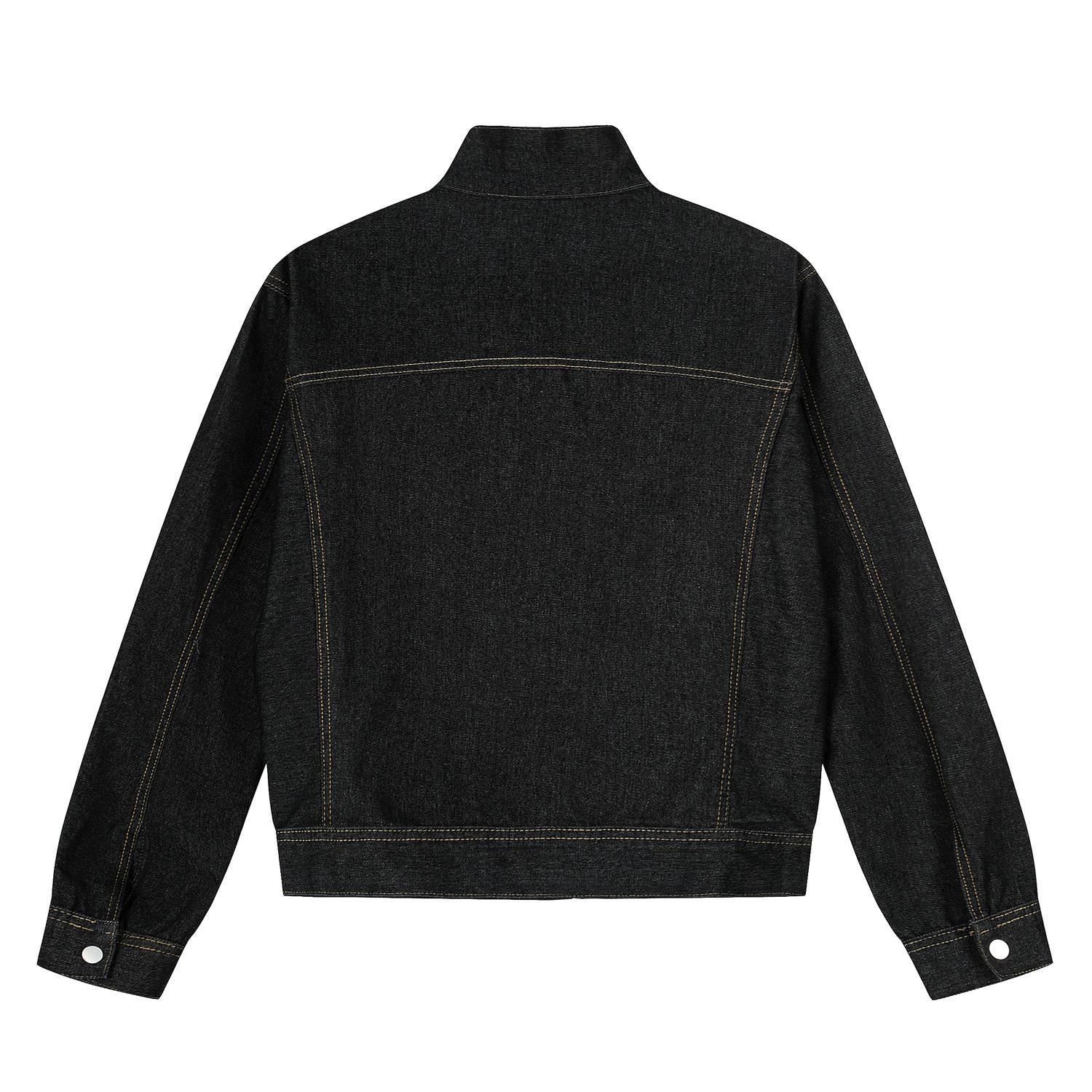 Vintage Washed Denim Jacket with Stand-Up Collar