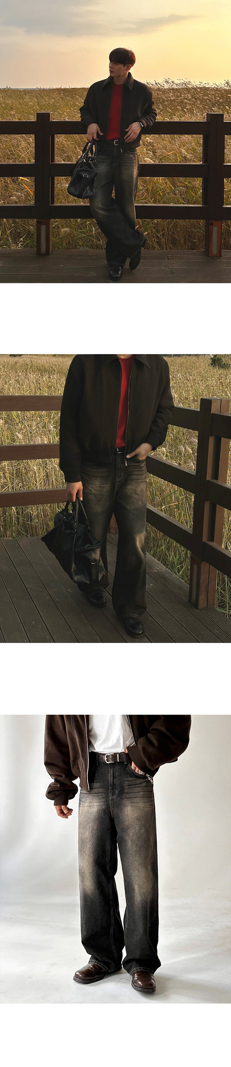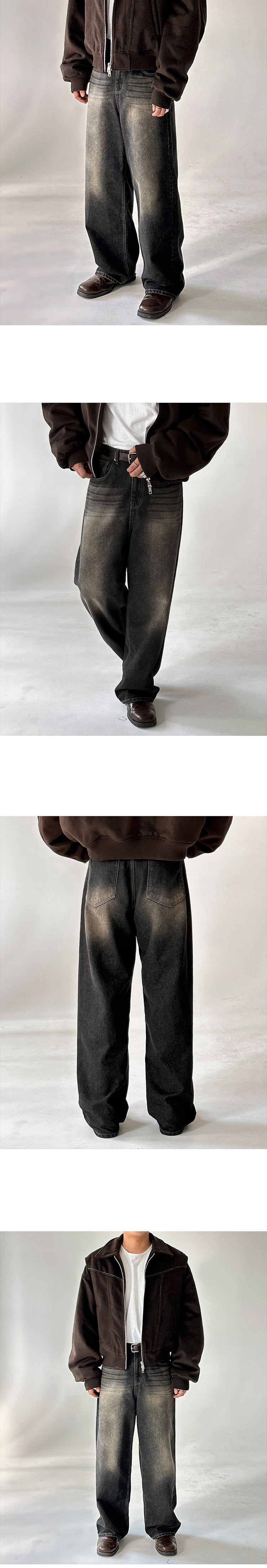 Vintage Washed Straight Leg Jeans Loose Wide Leg Pants